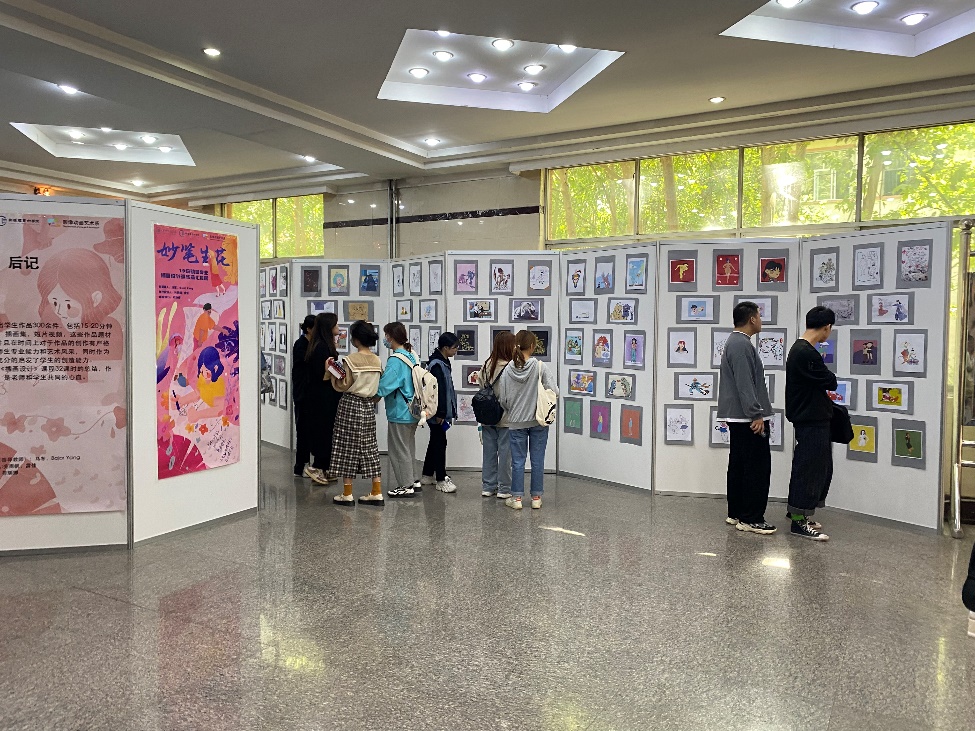 9月30日-10月10日,在搜书吧 金花校区8号教学楼2楼大厅展出了19级影像动画艺术系学生《插画设计》课程的作品,此次展览是由马冬院长和Bajor Yang老师对于《插画设计》这门课程如何引导学生创新精神的总结,包括了限时(15-20分钟)创作,经典再创作,插画短视频,绘本,插画集。为了提高学生的创新能力,创造更多的实践机会,两位老师也只是做了整体引导,画展从策展,布展,海报设计,互动环节,都是学生全程参与设计与策划的。