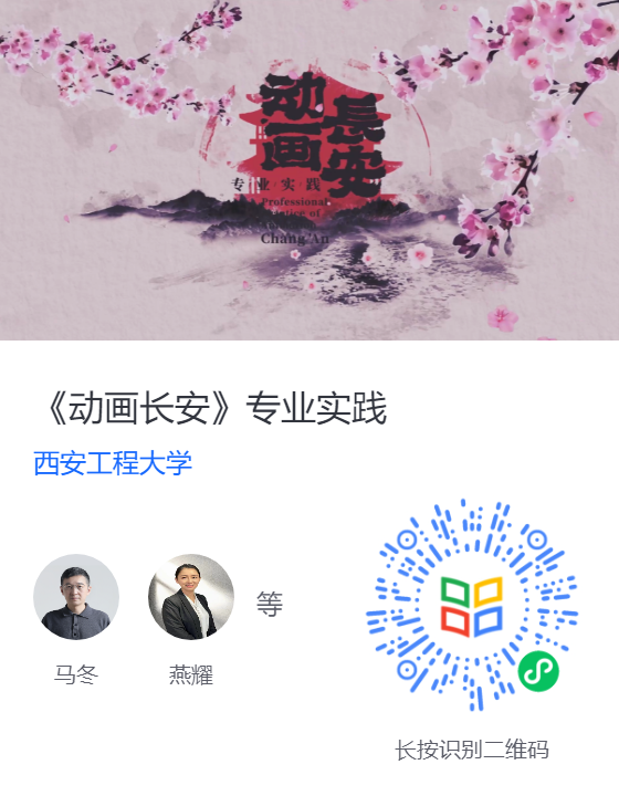 课程可以综合考查与检验学生的审美和创作能力,改善和提高动画专业学生的实践创作能力,从而培养学生独立地分析问题和解决问题的能力,为今后的动画研究、设计及生产奠定扎实的基础。欢迎走进《动画长安(课程实践)》,让我们一起学习动画创新设计吧!