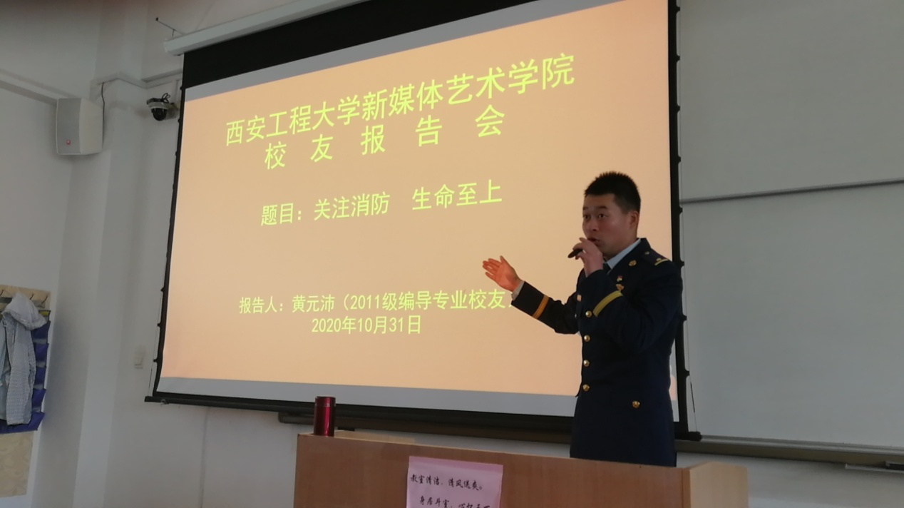 11级广播电视编导专业校友、陕西省消防救援总队宝鸡支队千阳县大队专职消防救援站千阳县专职消防救援站党支部书记、政治指导员黄元沛做了题为“关注消防,生命至上”的报告。他分享了个人的成长经历、职业生涯,讲解了消防常识和安全知识等内容,通过详实生动的实例,提升了大家的消防安全意识和自我保护意识,增强了对消防救灾、紧急救助等相关常识的掌握。