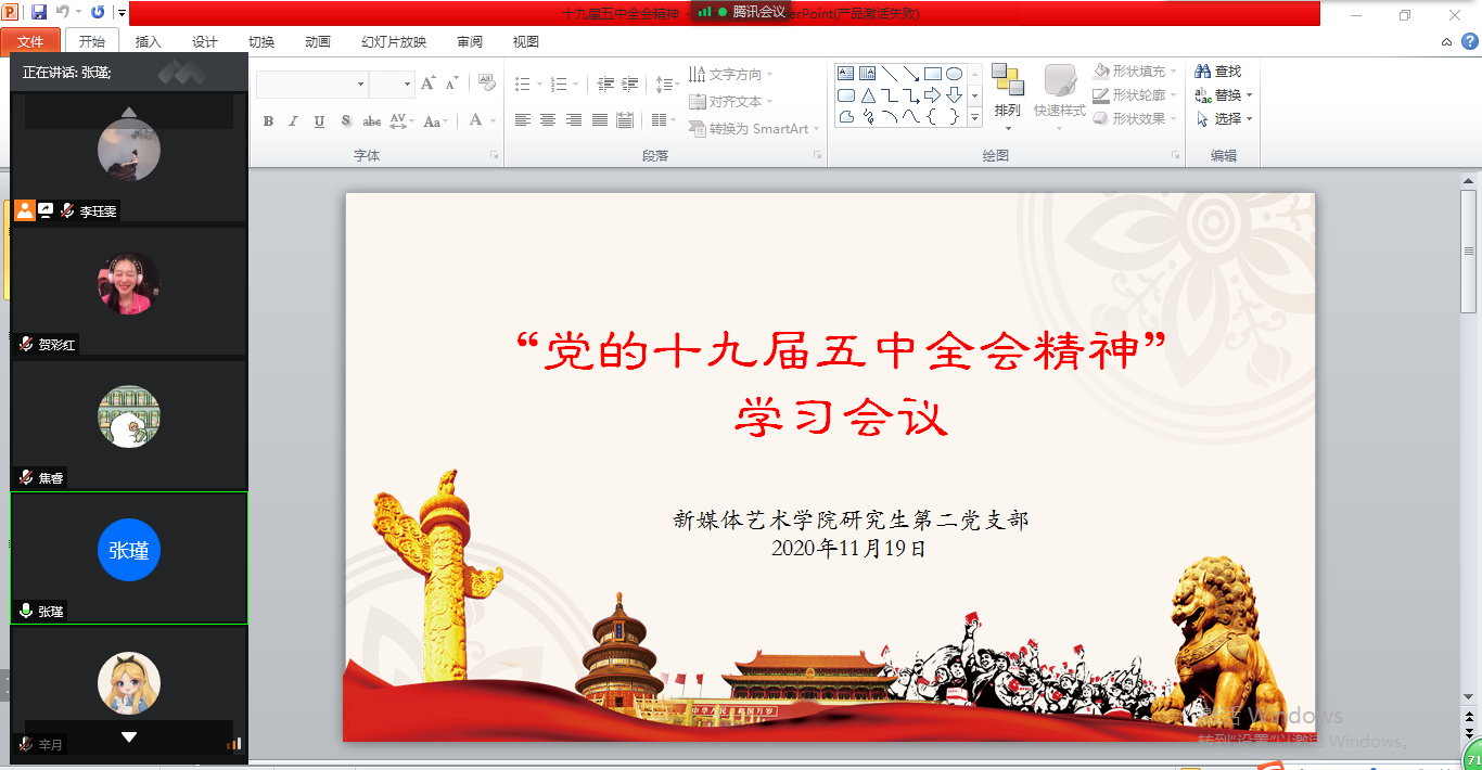 2020年11月19日,搜书吧 研究生第二党支部通过腾讯会议平台召开“十九届五中全会”精神学习会议,会议由支部书记张瑾主持,支部全体党员参加了此次会议。