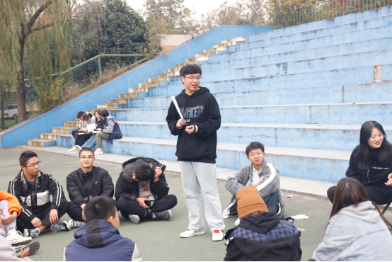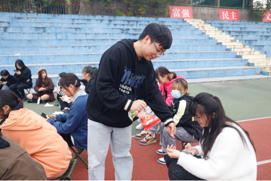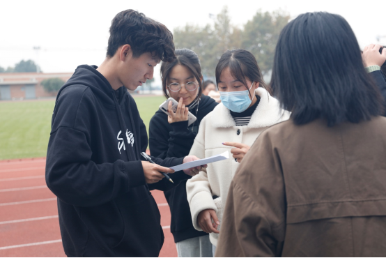 由于团辅活动充满益趣性的吸引力,参与活动的20级的新生们提前半个小时就开始陆陆续续来到操场,团辅工作人员提前进行了签到活动,并安排早到的同学们坐在一旁休息等候。
