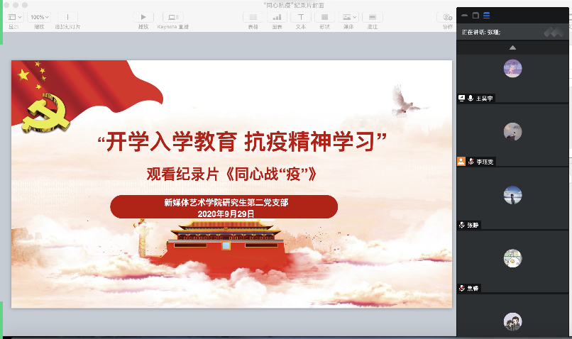 为深入学习贯彻习近平总书记关于疫情防控工作的重要讲话精神、把抗疫精神宣传融入开学入学教育中,2020年9月29日,搜书吧 研究生第二党支部在腾讯会议平台召开了以学习“抗疫”精神为主题的视频会议。会议由支部书记张瑾主持,支部全体党员参加本次会议。