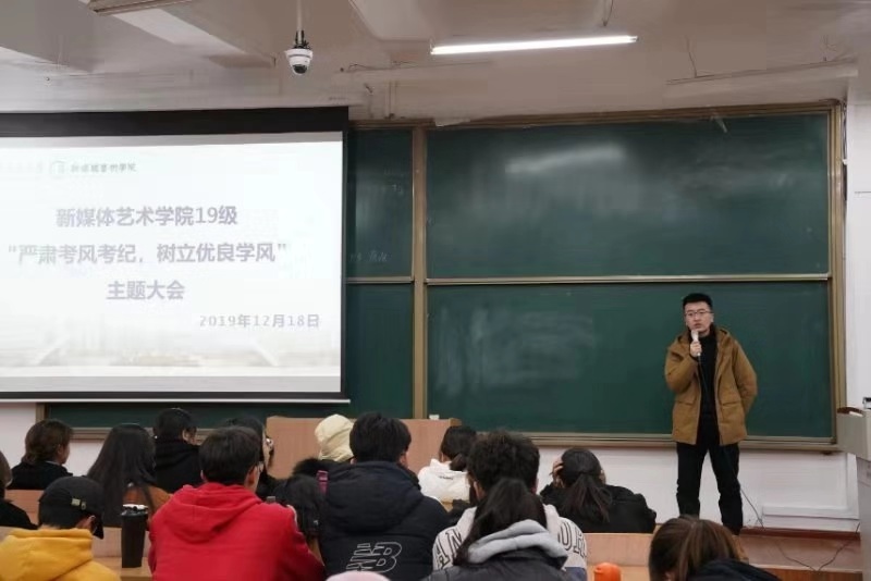 为了进一步严肃考风考纪,树立优良学风,构建诚信校园,保证期末考试的顺利进行。2019年12月18日晚七点,搜书吧 在B-237教室召开了“严肃考风考纪,树立优良学风”教育大会,本次大会由19级辅导员康新兴主持,2019级全体学生参加了此次大会。