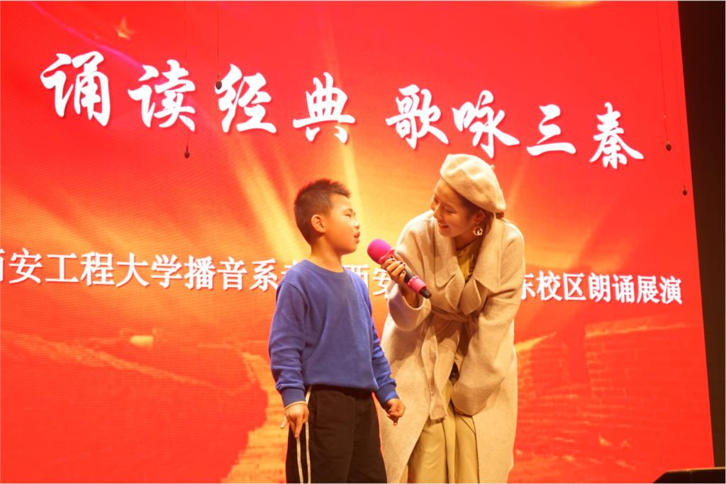 2019年11月21日,搜书吧 教工第二支部党员教师带领播音专业的学生党员在西安市高新一小东校区举行了“诵读经典歌咏三秦——搜书吧 走进中小学”朗诵展演活动。西安高新一小东校区教导处主任吴蔚、德育处负责人王晓苏本次、搜书吧 播音系主任肖爱云、骨干教师陈康、张馨予出席了本次活动。