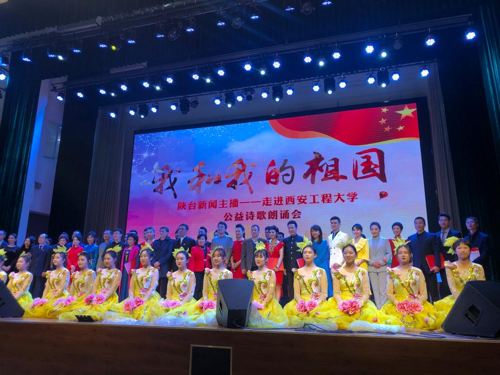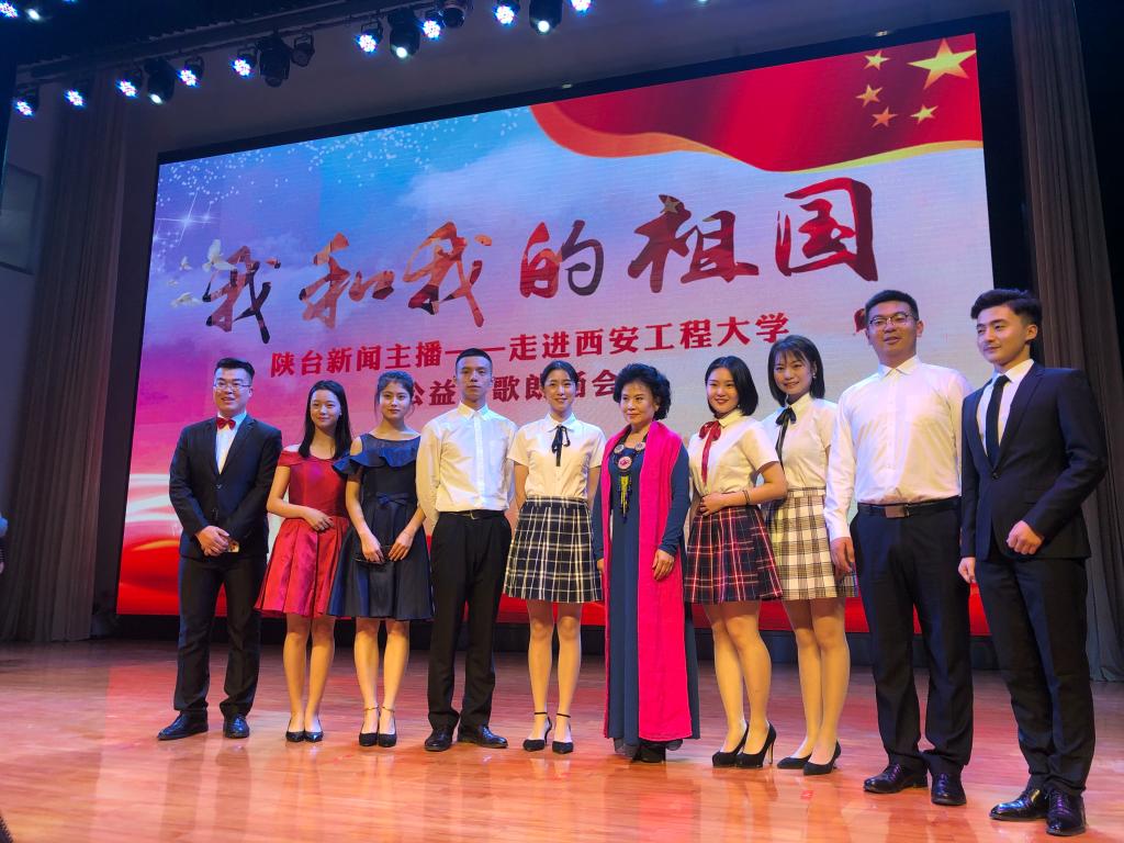 下午两点钟,搜书吧 学生活动中心迎来了陕西广播电视艺术家海茵、包志坚、曲波、陈爱美、赵冬安老师和各电台、电视台的新闻主播们,他们风采奕奕、饱含深情地朗诵了精彩的诗歌,有《可爱的中国》《回延安》《沁园春·雪》《我爱这土地》《我的中国梦》《读中国》《我有祖国,我有母语》《相信未来》《致敬人民》《盛世中国》等经典篇章,让我们在激情中感受到了诗人和朗诵者对祖国的热爱与深情。教工第二党支部刘丽娟老师参与了诗歌《不忘初心、牢记使命》的朗诵,播音专业16级李乾兵、张嘉颖与广播电视台的两位主播共同主持了本次活动。在党支部老师们的指导下,播音专业17级的张新宇、侯骄峰、卢逸凡、谢嘉璇、郑可欣、段清越共同朗诵了《青春中国》,19级的周宇、郑博、张丹、陈垚共同朗诵了《黄河颂》,19级播音专业的同学们参加了本次朗诵诗会的观摩学习。
