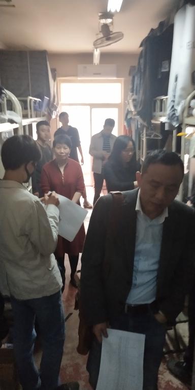 2019年4月8日下午16时,搜书吧 党委书记左志峰、副书记高翔、副院长王坚、丛红艳以及全体辅导员对学院学生宿舍进行安全卫生大检查。