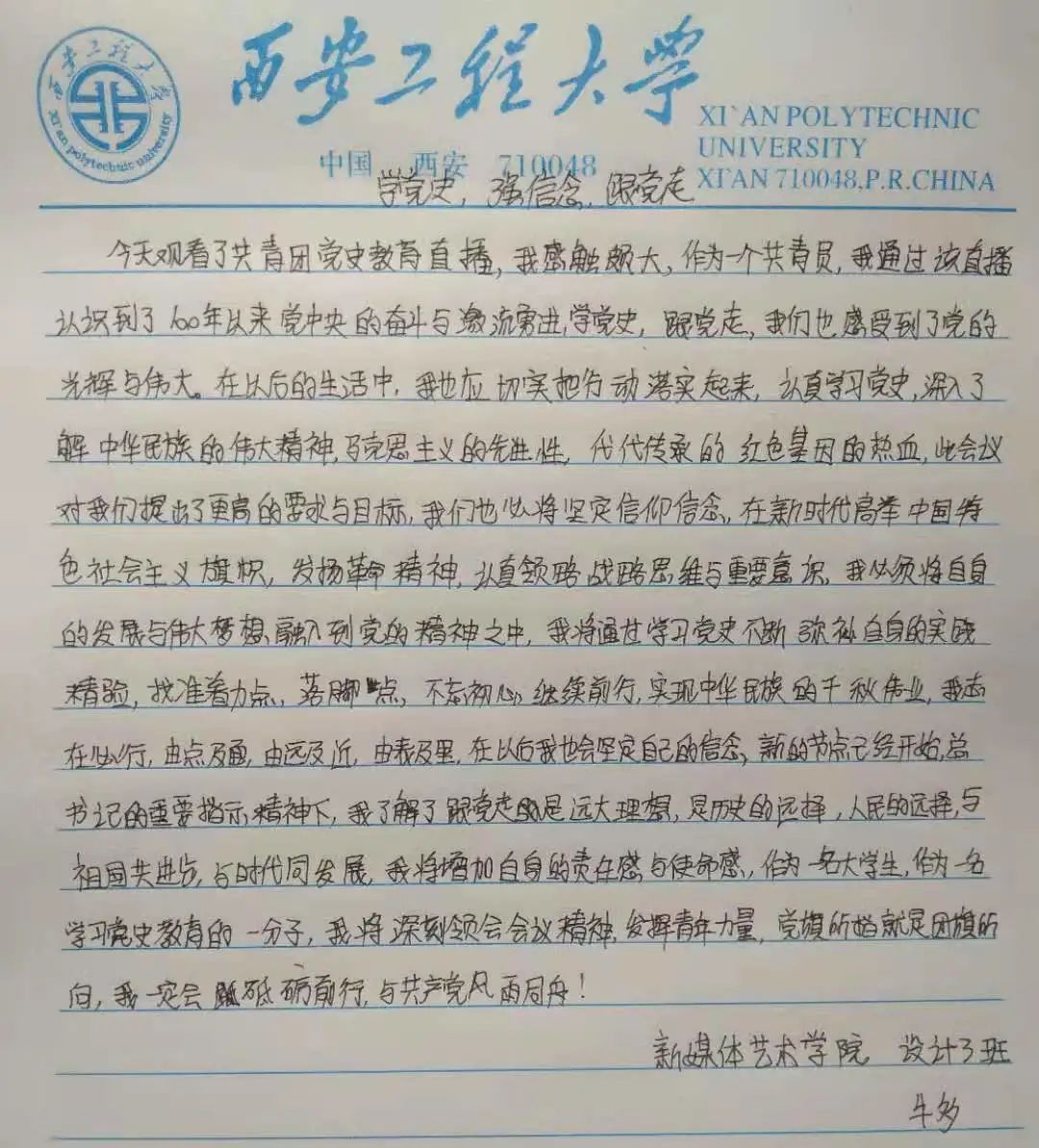 团总支副书记贾宏博归纳总结:我们要以史为鉴,锐意进取,深学其法、深究其义,将党的指导思想贯彻落实到具体行动中,走学习中国特色社会主义道路,就要率先垂范、积极进取、开拓创新,学以致用,以学促新。作为新时代青年,我们要身体力行,为党的建设增光添彩,用青春的力量壮大祖国的璀璨未来!