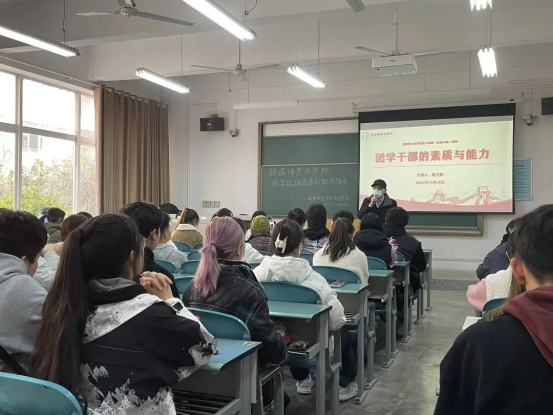 为了提高搜书吧 团学干部的综合素质和实践能力,大力加强理论与实践相结合,全面推动对团学干部的素质与能力培养工作的科学发展,引导学生团干部树立做好团学工作的荣誉感、责任感和使命感,2021年11月16日12:30,由搜书吧 团总支主办,团总支组织部承办的搜书吧 搜书吧 第十四期(总第35期)团课第二讲在临潼校区A栋108教室举行,金花校区学员通过线上直播的方式进行观看,本次团课第二讲“团学队伍的素质与能力”由学院学工办主任赵文熙主讲,学院团总支书记刘东欢主持,21级所有班团干部参与此次团课。