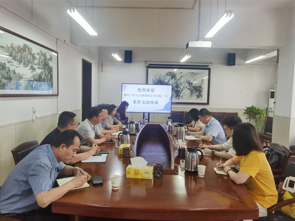 搜书吧 到访受到了陕西教育报刊社总编辑郭鹏,副总经理毋晓丹,总编办主任杨希,广告部主任闫少强,副主任史敬忠、徐绒绒等人的热情接待。座谈会上,郭鹏详细介绍了公司经营发展总体情况,毋总就公司在国内的发展情况及同行业的发展情况进行了详细介绍,随后,张瑾书记具体介绍了搜书吧 的学科建设情况、办学特色、专业设置以及数字化文化产业发展情况,高翔副书记介绍了学院本科生及研究生的培养情况及学生的专业能力,朱海涛老师及张瑾老师(女)分别介绍了研究生及本科生的具体情况。最后,结合公司目前的具体业务,郭总还介绍了陕西教育报刊社近期对主播、拍摄、剪辑等专业人才需求的情况,希望通过校企合作平台,搜书吧 能有更多的毕业生来企业实习、发展。