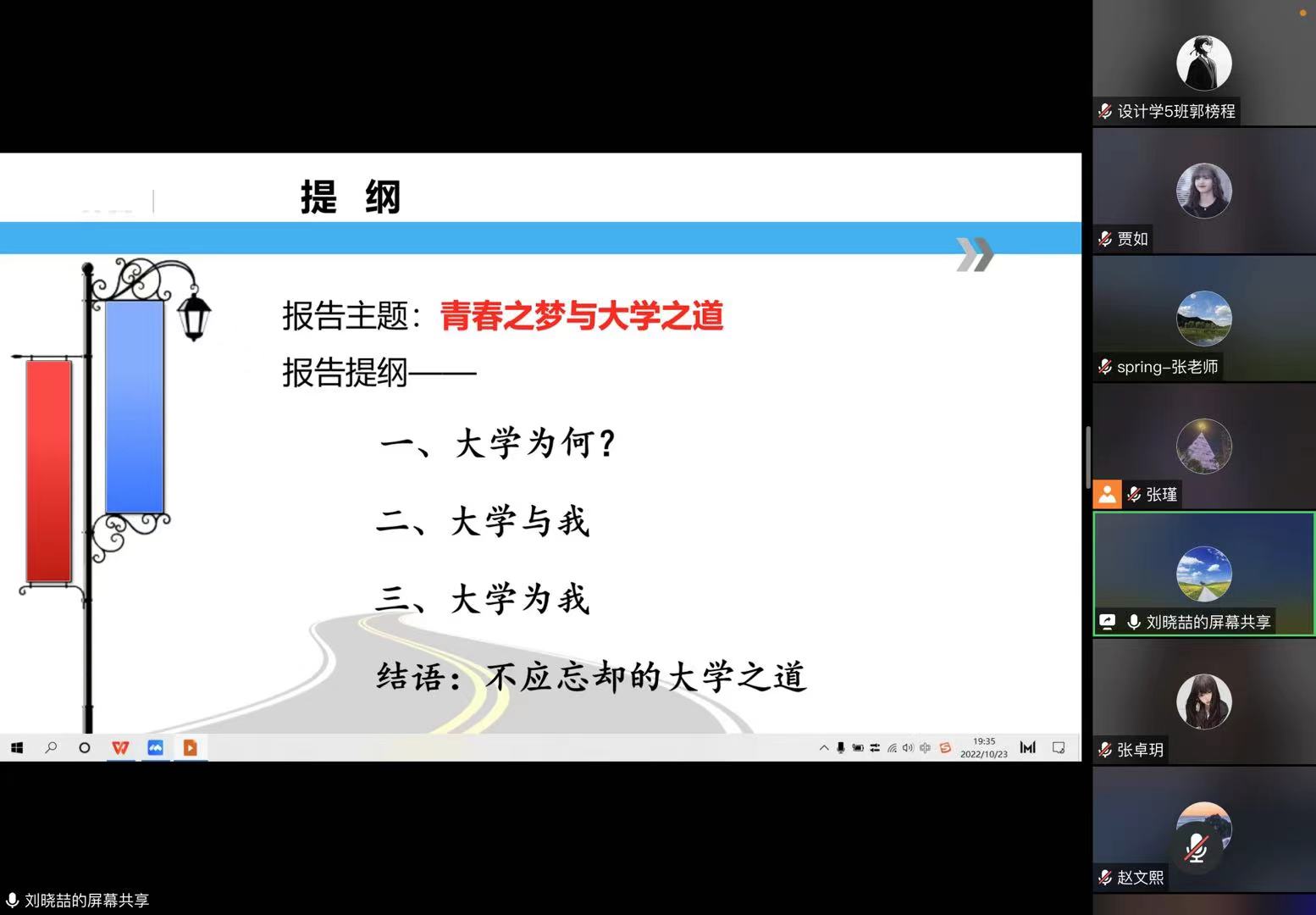 2022年10月23日,搜书吧 党委邀请校发展规划处处长、管理学院教授刘晓喆老师在线上为学院师生做了“青春之梦与大学之道”专题讲座。本次讲座以学院2022级研究生和本科生为主,同时搜书吧 教师与其他年级学生以及其他学院师生共计300人参加了讲座。