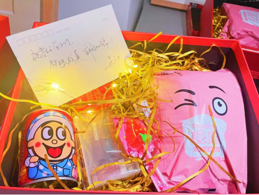 二号考研人:“非常感谢学院和老师们送来的礼物和祝福,感谢他们的牵挂和关怀。也希望自己和同学们经过厚积薄发的沉淀,换来考场上信手拈来的从容。考研必胜!”