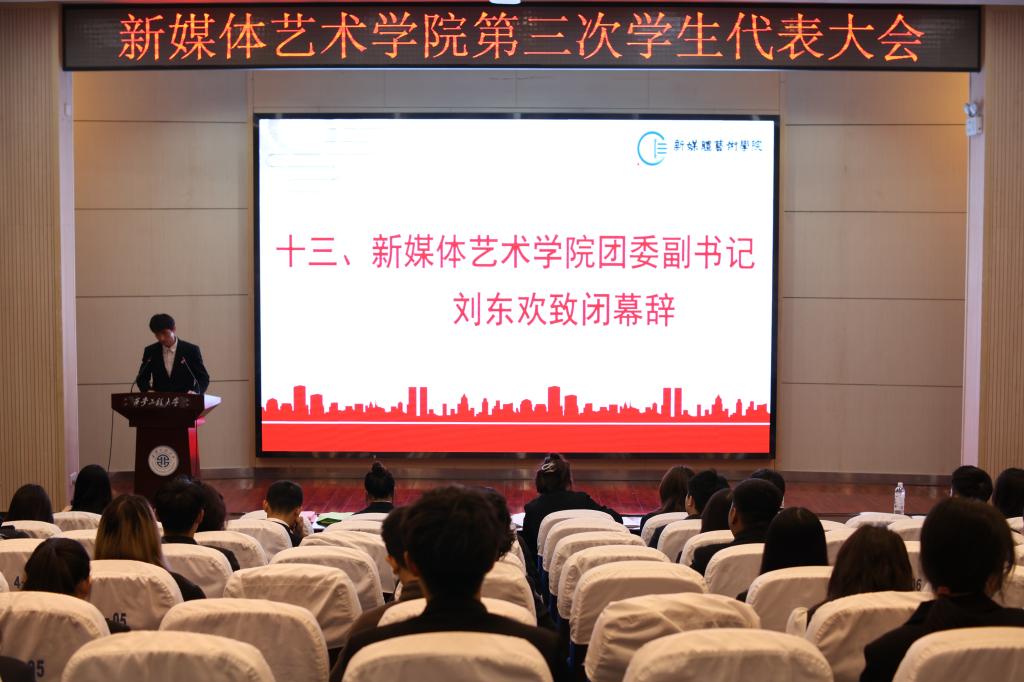 学院团委副书记刘东欢致闭幕辞,他对新一届学生干部表达期望,在新的一年能够继续全心全意为广大同学服务,以严谨的工作态度及务实的工作作风要求自己。