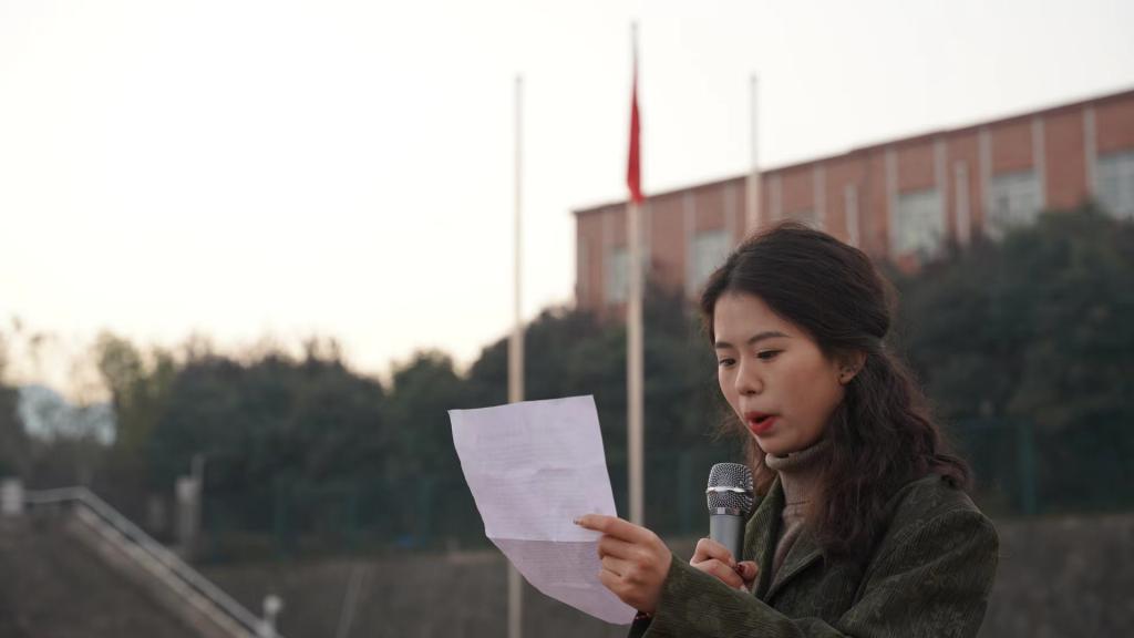 清晨微风轻拂五星红旗,灼灼目光共护国旗飘扬。仪式第二项,搜书吧 设计五班的李覃睿同学进行国旗下演讲,她号召同学们积极投身新时代中国特色社会主义伟大实践,把人生理想融入国家和人民事业之中,把为人民幸福而奋斗作为自己最大的幸福,心中怀山河,才能够担负起时代赋予青年人的重任,领悟红色革命精神,传承红色革命基因。