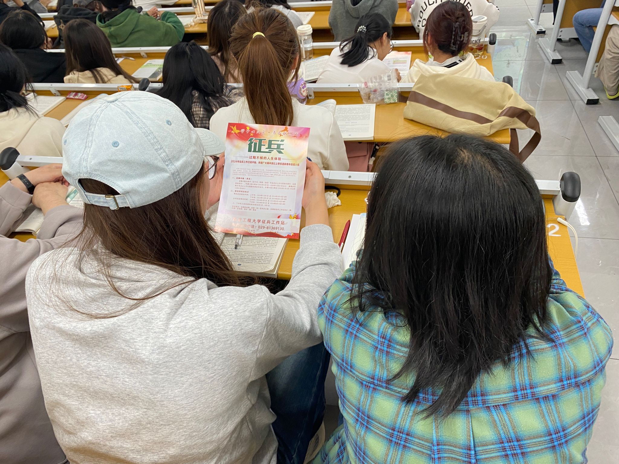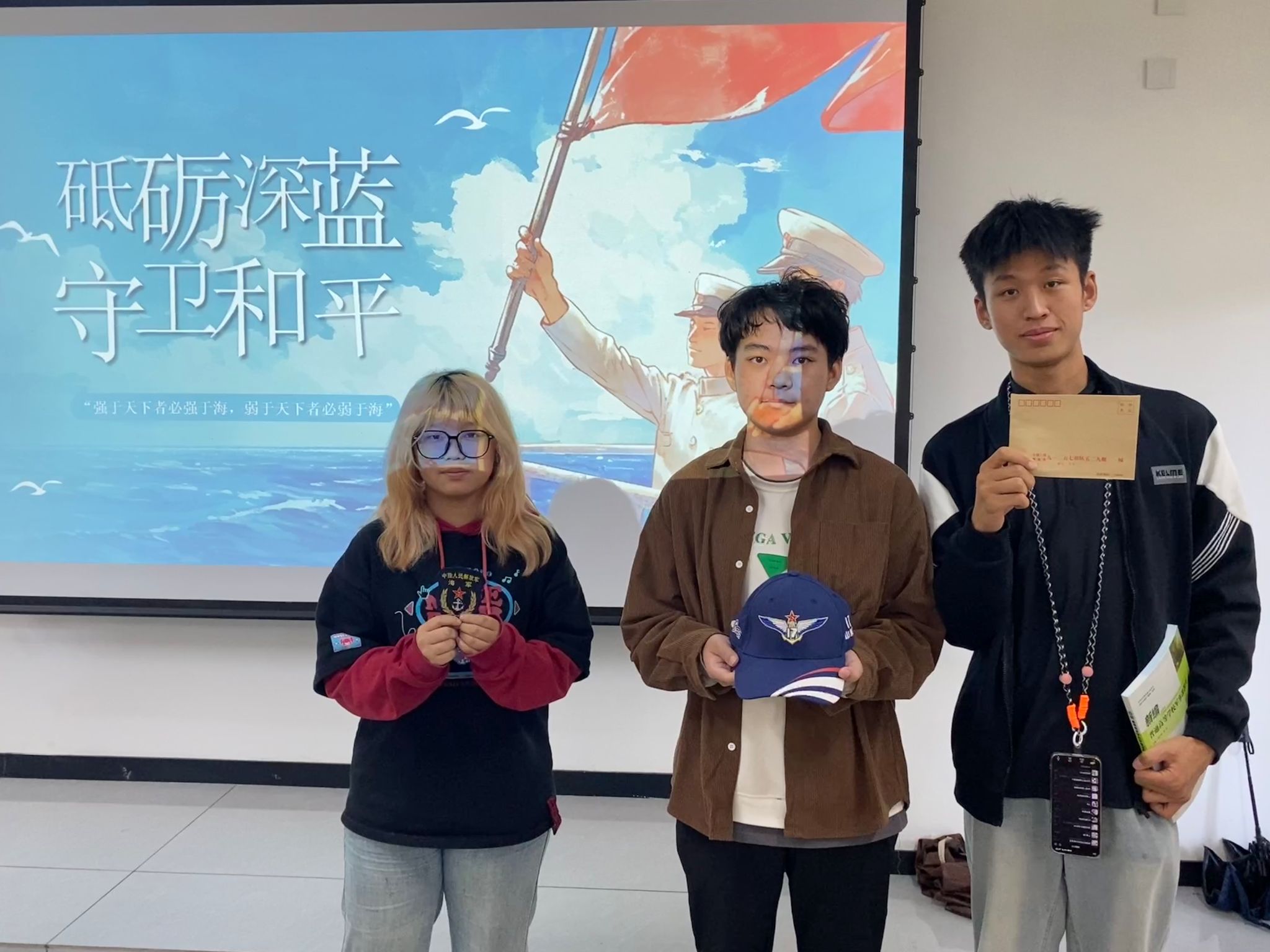 同时房灿同学从参军入伍条件、教育资助、就业创业、医疗保障等多个方面,深入浅出地介绍了征兵及退役士兵优惠政策,并现场解答了同学们的疑问。现场还设置了问答游戏环节,房灿同学为学弟学妹们准备了海军纪念礼物:中国人民解放军海军臂章、纪念信封、海军帽等。现场气氛热烈,同学们纷纷表示受益匪浅,不仅对退役士兵政策有了更加全面和深入的了解,同时感受到了学校和社会的关怀和支持。