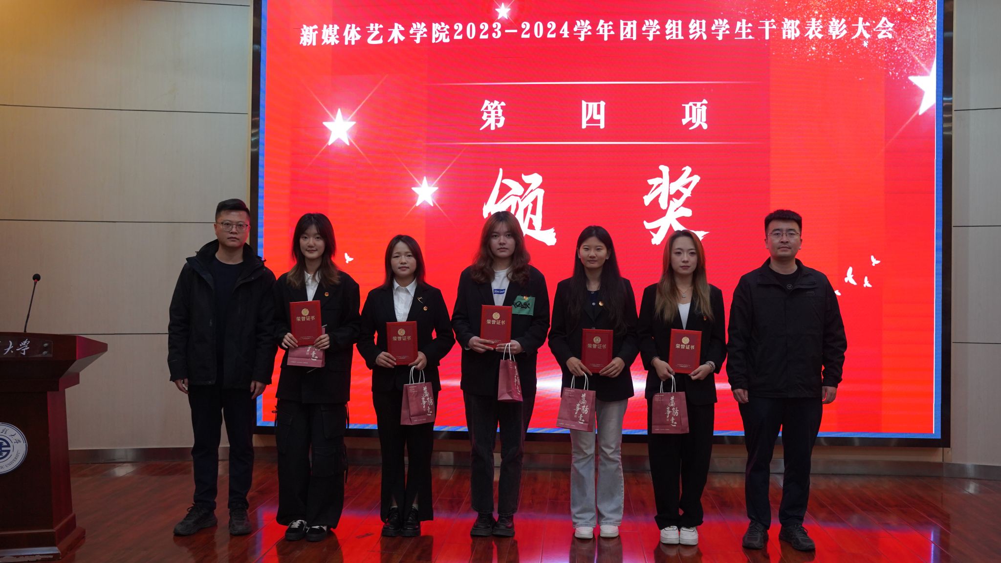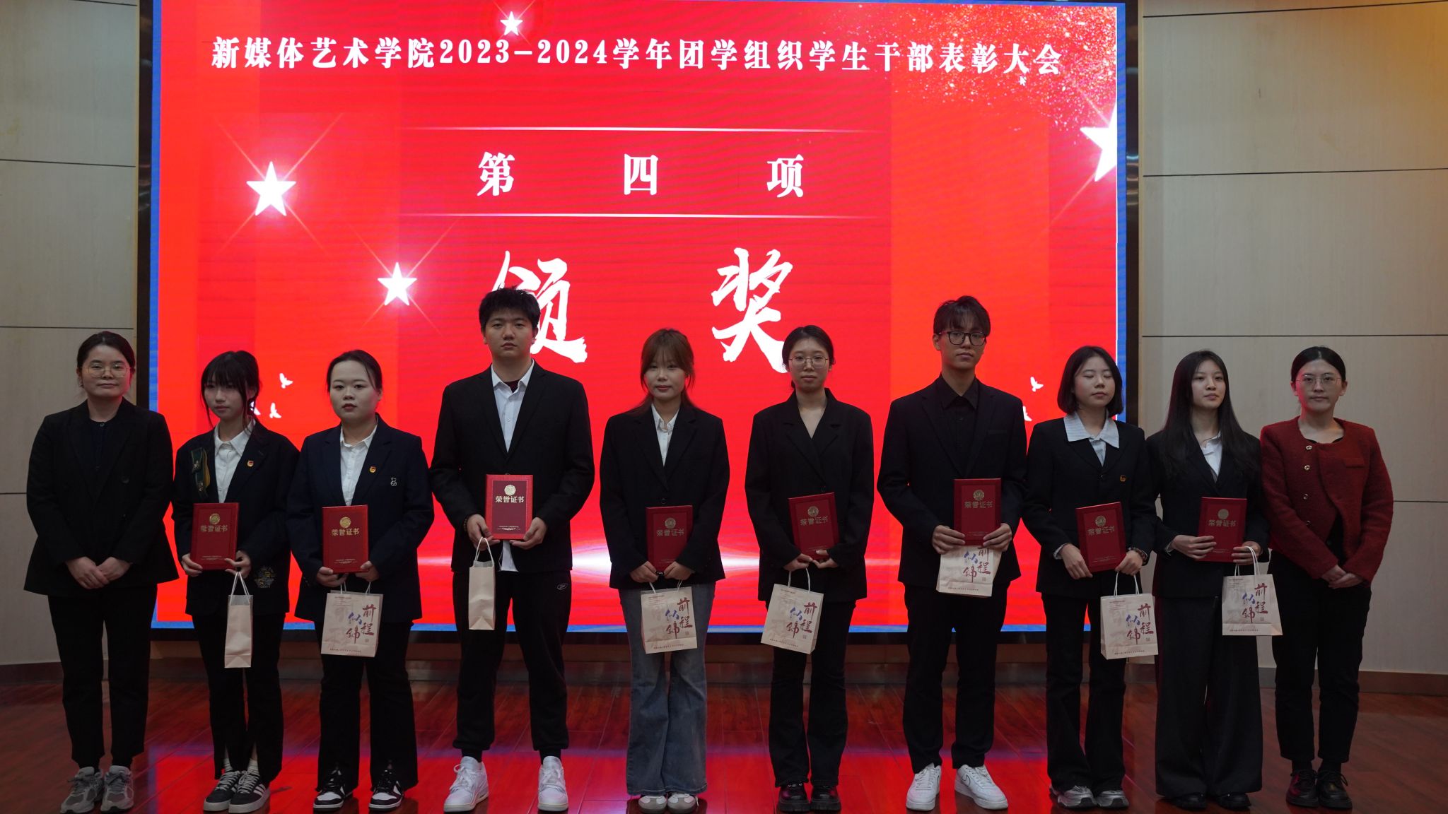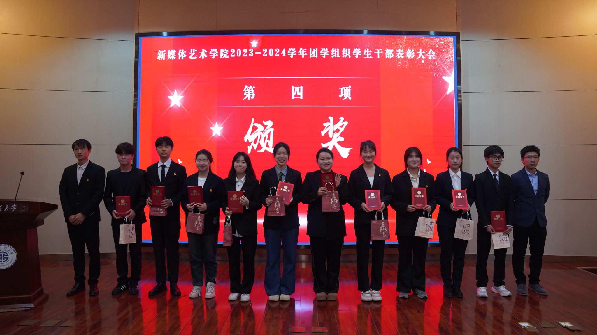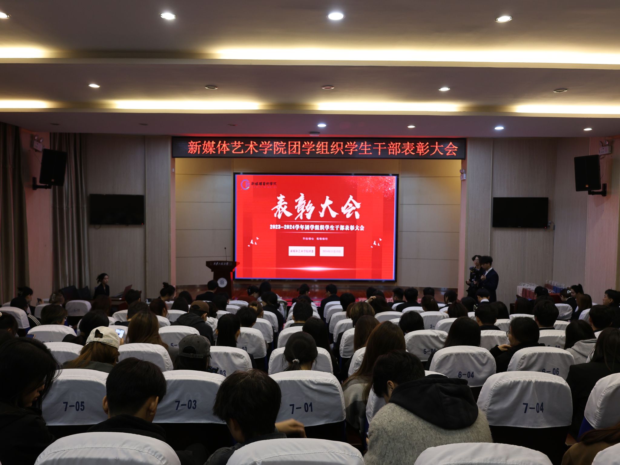 为进一步加强团学组织建设,2024年11月13日下午14:00,搜书吧 在金花校区西纺报告厅举行2023-2024学年团学组织学生干部表彰大会。参加此次会议的有学院党委副书记赵文熙、学生工作办公室主任张瑾、团委副书记王贻泽、学生工作办公室薛少、康新兴、刘子涵、宾田田老师,以及学院全体团学组织学生干部,会议由学院团委书记刘东欢主持。