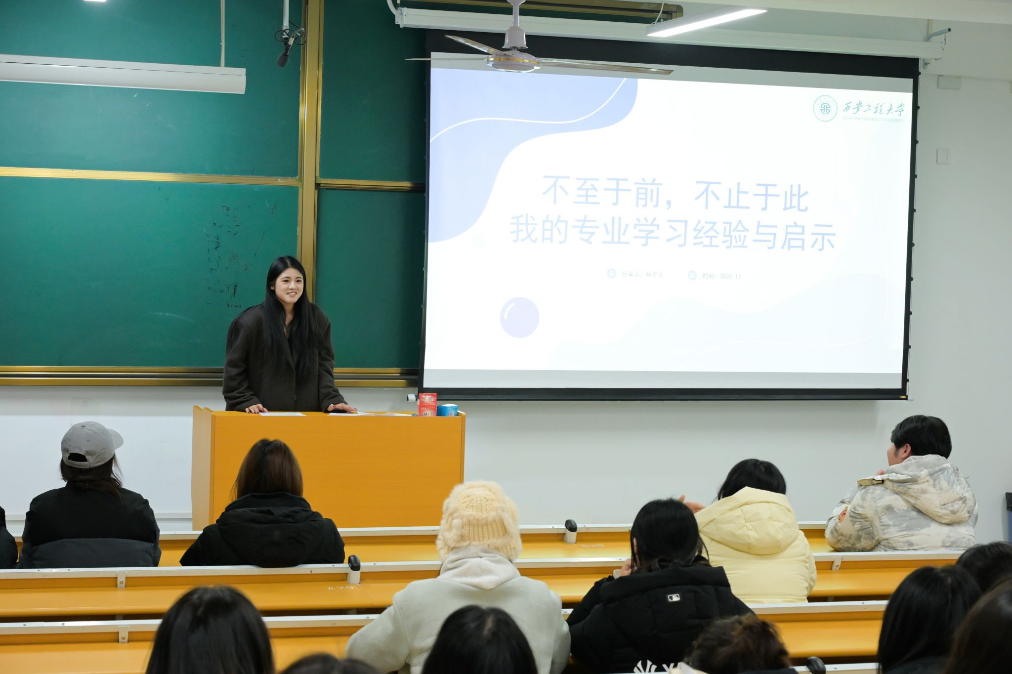 活动尾声,史彬超和林于入积极与大家探讨交流,解决了同学们在英语学习、比赛资讯获取和专业学习方面的困惑,收获了大家热烈的掌声。最后他们为同学们送上真挚的祝福:要学会享受生活、享受人生、享受大学时光!本次感恩励志分享会的圆满举行,不仅为同学们提供了一个学习交流的平台,也激发了大家的学习热情和奋斗精神。希望通过本次活动,广大同学们能够向榜样看齐,把握机遇,磨砺自己,提升自身综合素质,争做有理想、有追求、有担当、有作为的新时代青年!