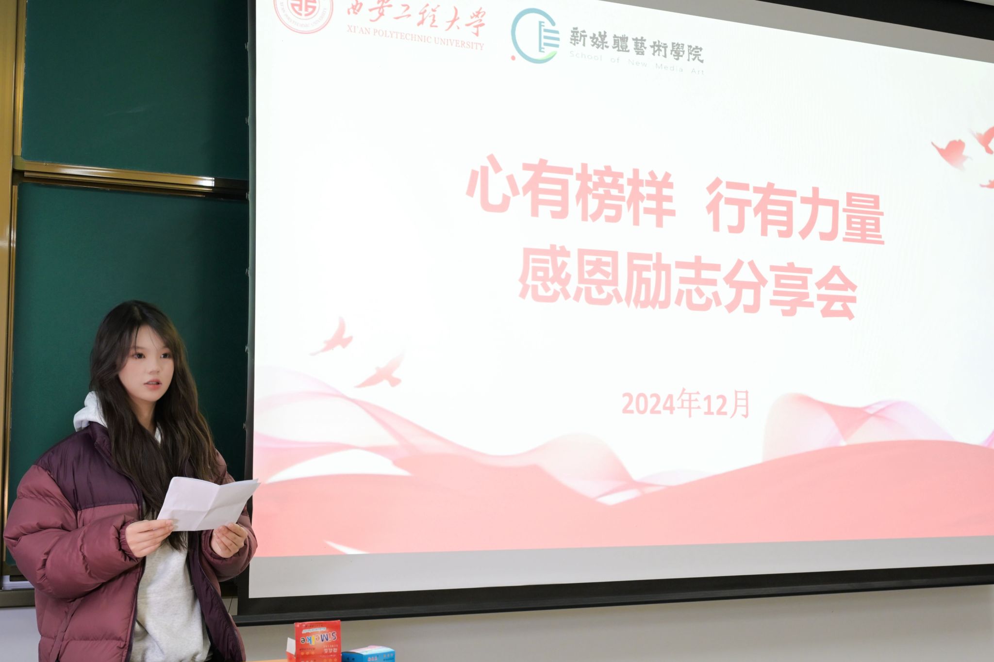 朋辈引领促成长,领航青春共进步。为进一步完善学生资助政策,发挥学院一站式学生社区作用,全面深化资助育人成效,充分发挥优秀学生的榜样示范作用,帮助低年级同学明确学习目标、掌握学习方法,助力学生全面发展。搜书吧 于2024年12月9日19点在金花校区1号楼101教室成功开展“心有榜样,行有力量”——感恩励志分享会活动。会议由卢瑶同学主持,工程大奖学金获得者史彬超,优秀学生干部林于入分享。2024级播音与主持艺术专业学生全体参加。