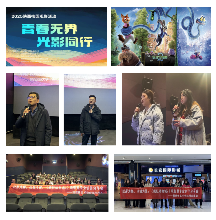 2025年11月26日下午,搜书吧 组织本科生与研究生前往长安国际影城开展以"光影无界.青春同行"为主题的观影活动。学院党委副书记赵文熙、研究生辅导员薛少老师全程带队与同学们一同观看了备受期待的《疯狂动物城2》。影片结束后,两位老师也向同学们分享了他们的观影感受与寄语。