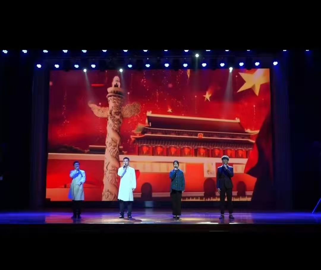 齐越朗诵艺术节暨全国大学生朗诵大会是由中国传媒大学主办,中华人民共和国教育部和国家语言文字工作委员会主管,教育部关心下一代工作委员会以及教育部语言文字应用管理司指导的全国性朗诵赛事。因疫情影响,此次大会组委会以保障广大师生及相关人员的生命安全和身体健康为第一原则,在主管单位的指导下此次大赛采用了线上展映的方式,得到了各院校的积极响应,共有来自33个省、自治区、直辖市和特别行政区的291所高校参会,来自51个院校的63部作品进入展映阶段,已经上线中宣部“学习强国”学习平台。该作品由播音系专业老师肖爱云、张馨予、刘丽娟指导,朱荣琛同学创作撰写,朱荣琛、郑博博、张丹、马偲涵四位同学参演。