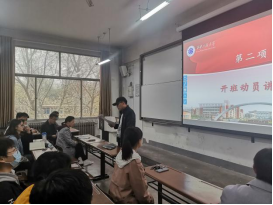 之后康新兴老师对此次党课培训具体要求进行讲解。党课分两期进行,严格考勤,同时学习党章中的知识,两期党课结束后进行考试。课堂上老师为大家放映了党章电视辅导教材视频,视频详细的讲解了党章的内容。通过学习,进一步提高学生的思想觉悟,深化对党的理解,为学院发展党员打下坚实的基础。(撰稿:康新兴 审核:左志峰)