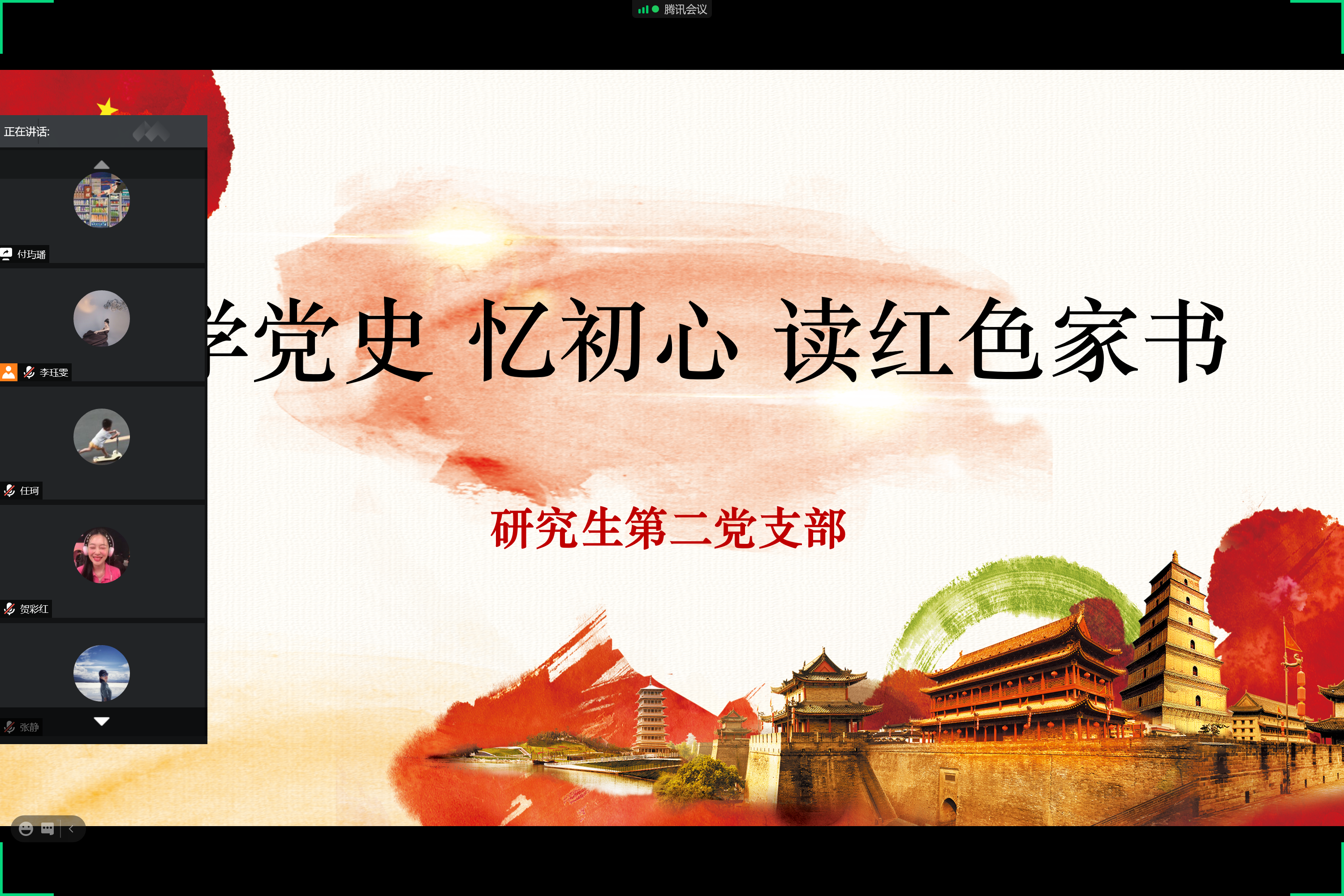5月6日下午1点,搜书吧 研究生第二党支部组织开展“学党史 忆初心 读红色家书”主题党日活动,支部书记张瑾主持,全体党员参加本次活动。