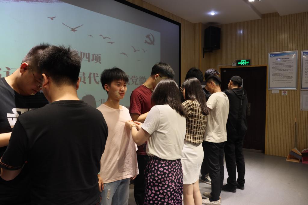 仪式在雄壮的《国际歌》声中拉开帷幕。仪式伊始,大会宣读了新党员名单,新党员代表宋慧带领新党员庄严宣誓,各支部书记为新党员代表佩戴了党徽。来自2019级编导专业的新发展预备党员代表韩旭发言,她表达了自己要恪守在党旗下的诺言,更加严格要求自己,时刻保持共产党员的先进性和先锋模范作用,努力使自己成为一名优秀共产党员的决心和信心。