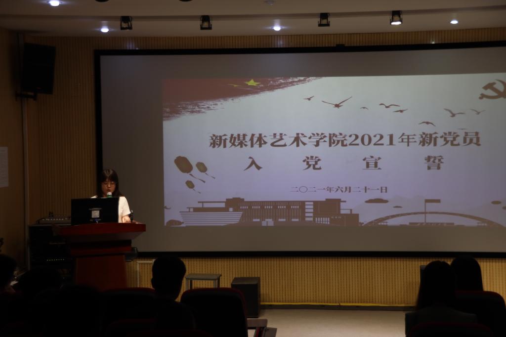 为庆祝中国共产党成立100周年,推进党史学习教育走深走实,6月21日下午,搜书吧 在8号楼影片观摩室举行了2021年新党员入党宣誓仪式,仪式由研究生第二党支部书记张瑾主持,学院党委委员赵文熙,学生支部书记及全体新发展的党员参加入党宣誓活动。