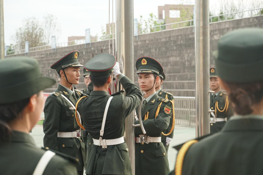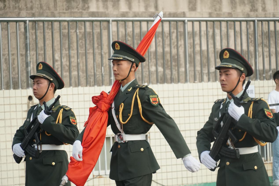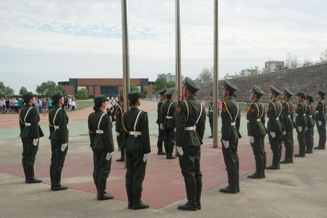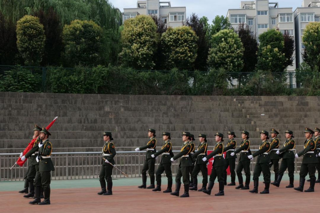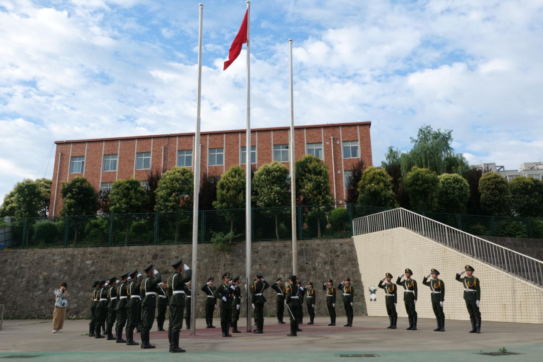 夏至已至,早晨初升的太阳照耀在大家坚毅的脸庞上,精神抖擞,意气风发。上午7点整,升旗仪式正式开始。英姿飒爽的国旗护卫队迈着整齐有力的步伐,护卫着五星红旗走向升旗台。