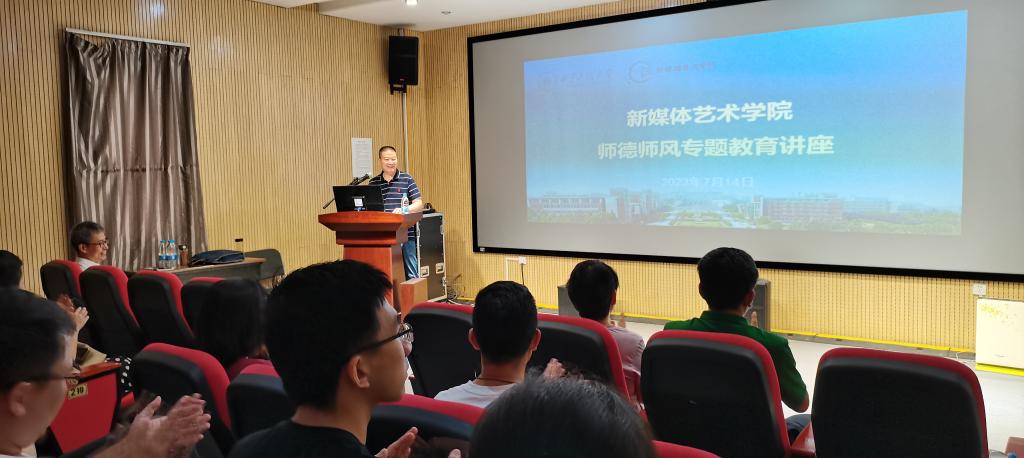 为深入学习贯彻习近平新时代中国特色社会主义思想和习近平总书记关于教育的重要论述,全面落实“立德树人”根本任务,积极引导学院广大教师做有理想信念、有道德情操、有扎实学识、有仁爱之心的“四有”好老师,7月14日下午,搜书吧 在观摩室召开师德师风专题教育系列活动,分为四个主题,一是进行师德集中学习教育动员部署;二是特邀我校管理学院教授兼发展规划处处长刘晓喆同志开展专题讲座;三是启动“一院一品”之“新媒师影”活动;四是举行师德师风教育“润德”观影活动。会议由搜书吧 党委书记张瑾主持,学院全体教职工参加。
