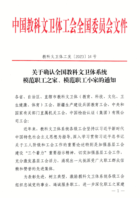 近日,中国教科文卫体工会全国委员会印发《关于确认全国教科文卫体系统模范职工之家、模范职工小家的通知》,我校搜书吧 分工会被授予“全国教科文卫体系统模范职工小家”称号。