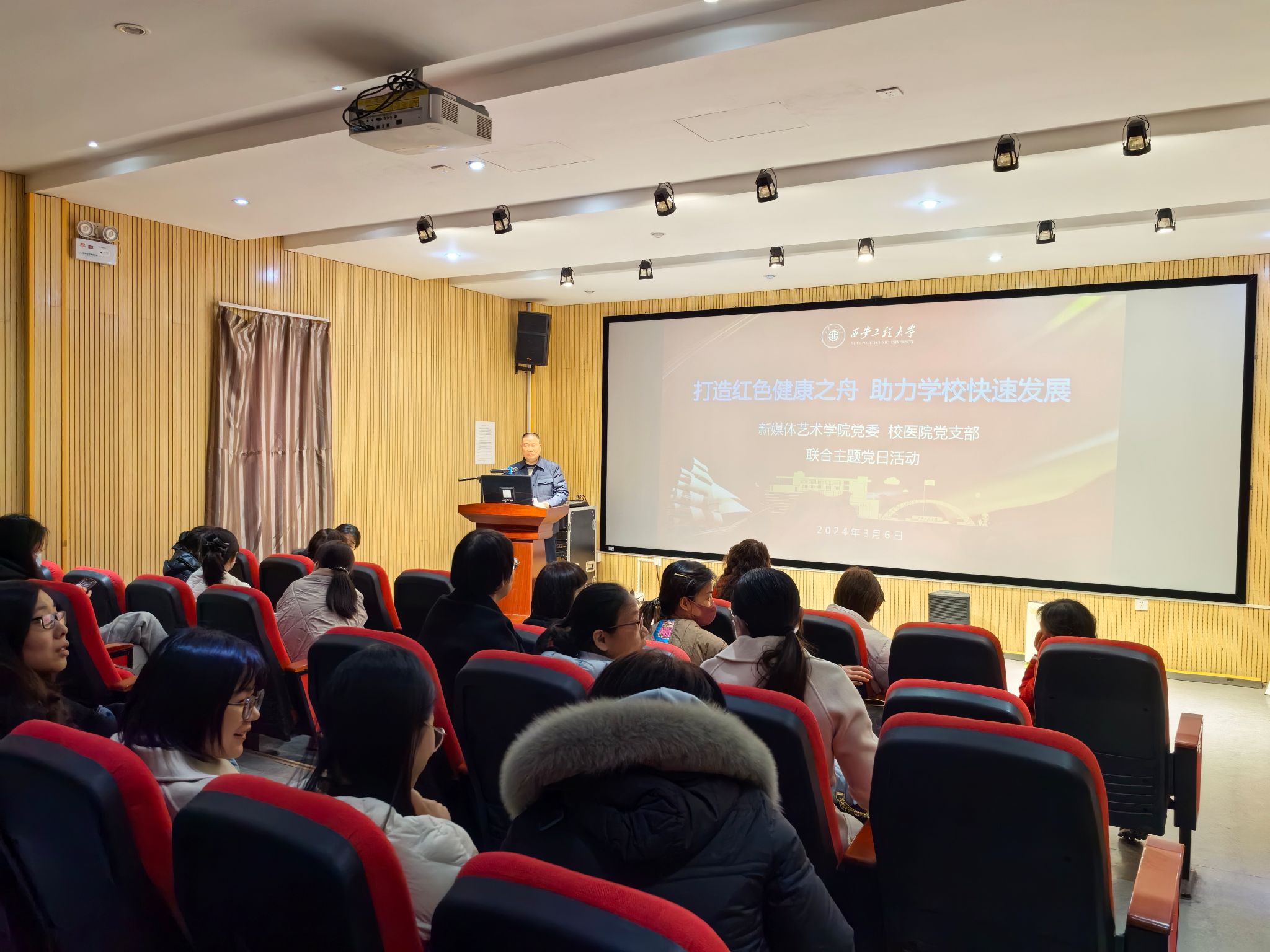 为深入学习贯彻习近平新时代中国特色社会主义思想,进一步激励党员干部担当作为、奋勇争先,引导党员关注身心健康,助力于学校高质量发展。3月6日下午,搜书吧 党委、校医院党支部在金花校区8号楼观摩室联合开展”打造红色健康之舟,助力学校快速发展”主题党日活动,活动由搜书吧 党委书记张瑾主持,校医院党支部书记刘蔓茹、80余名教工党员参加活动。
