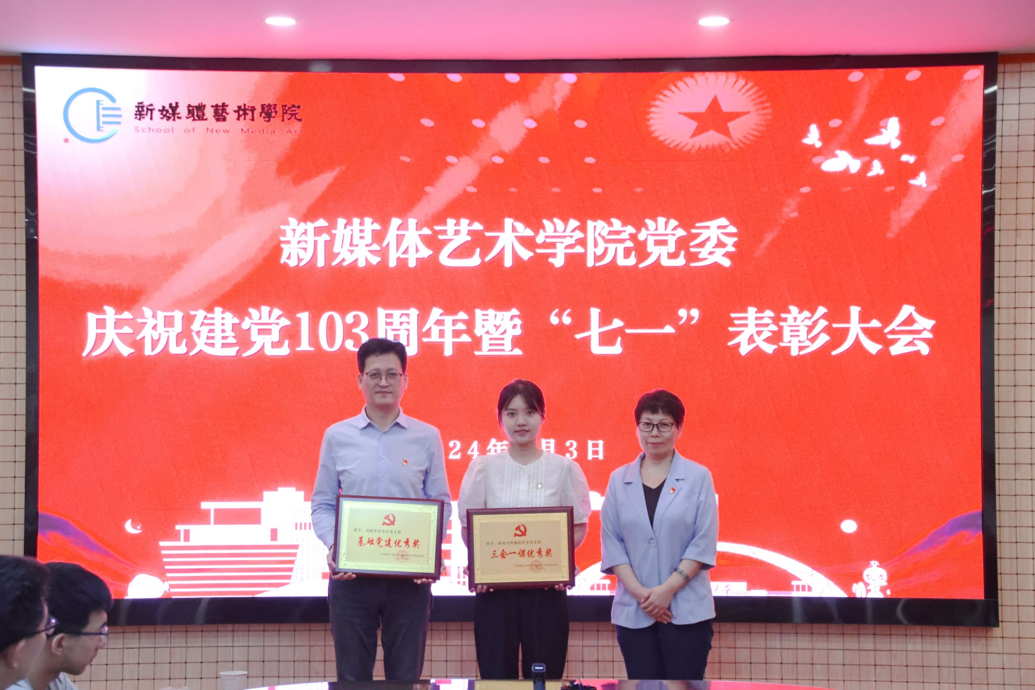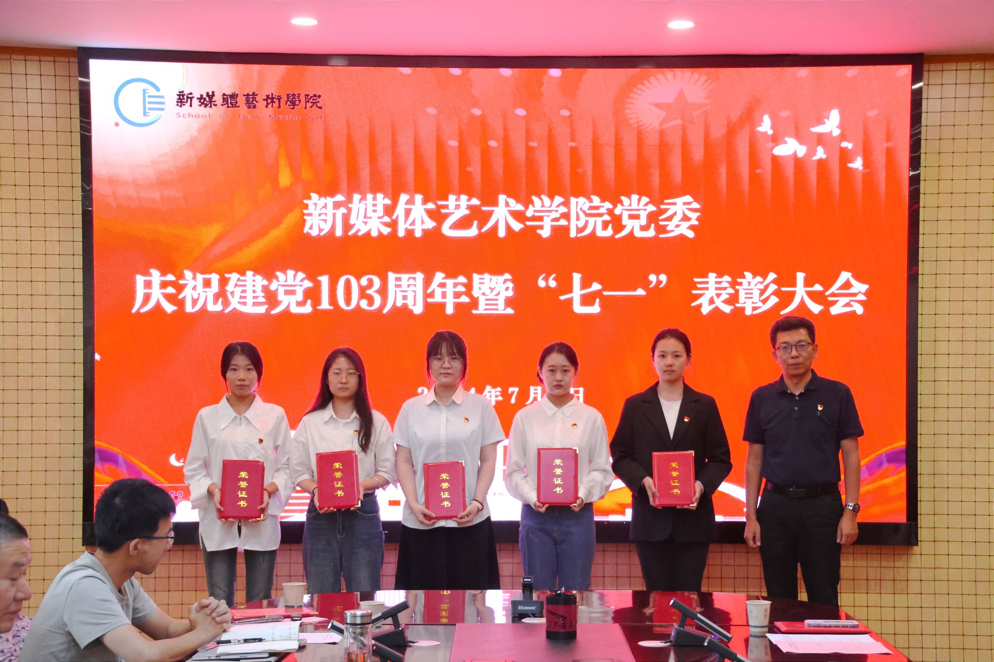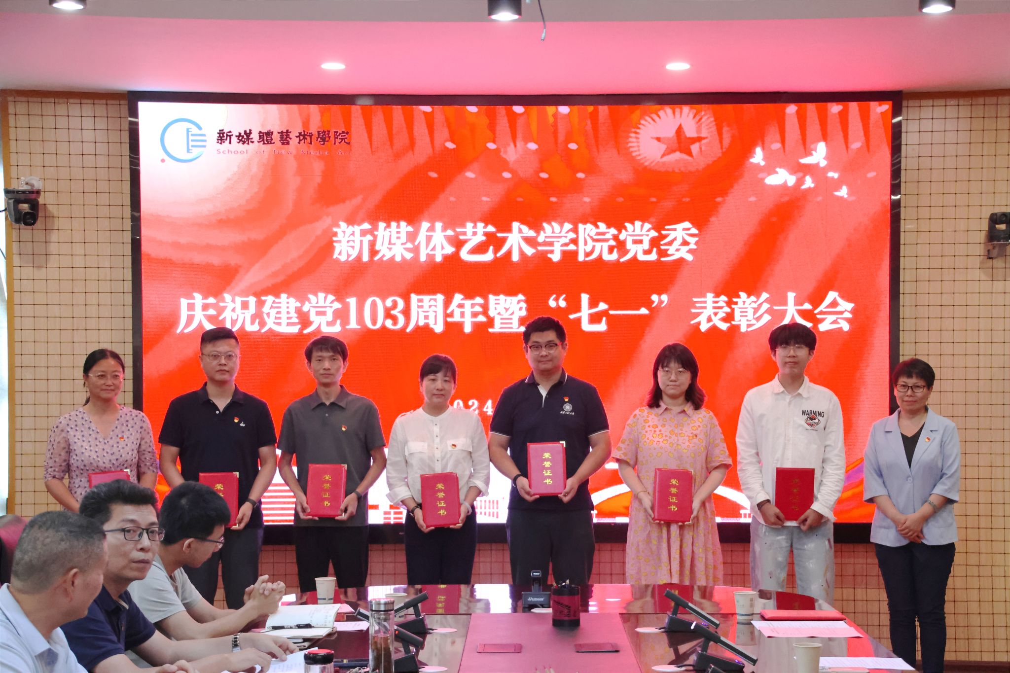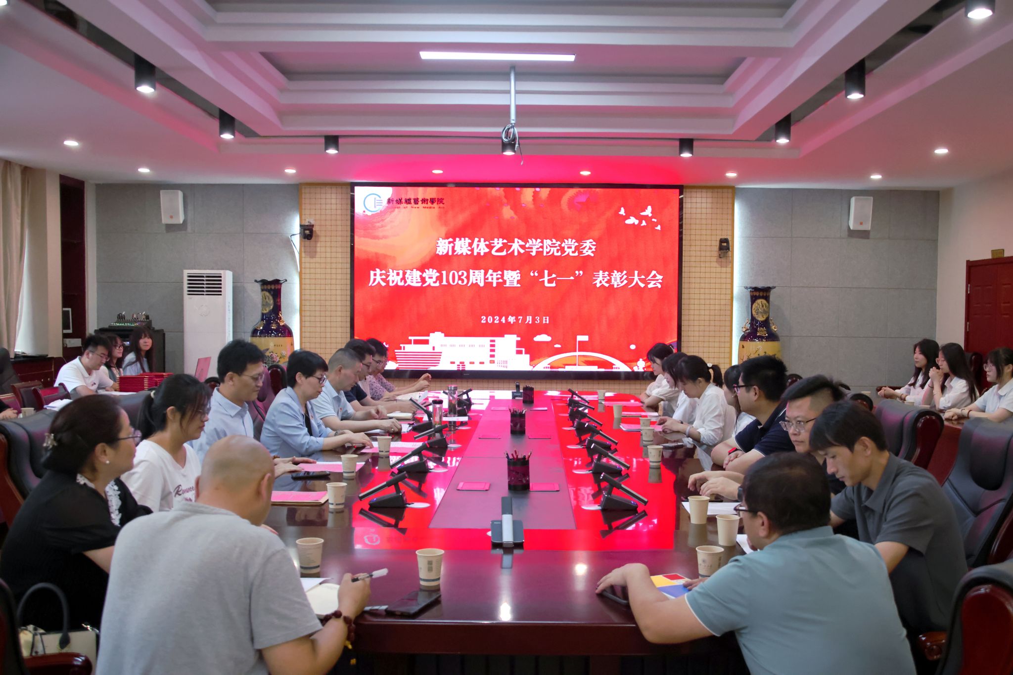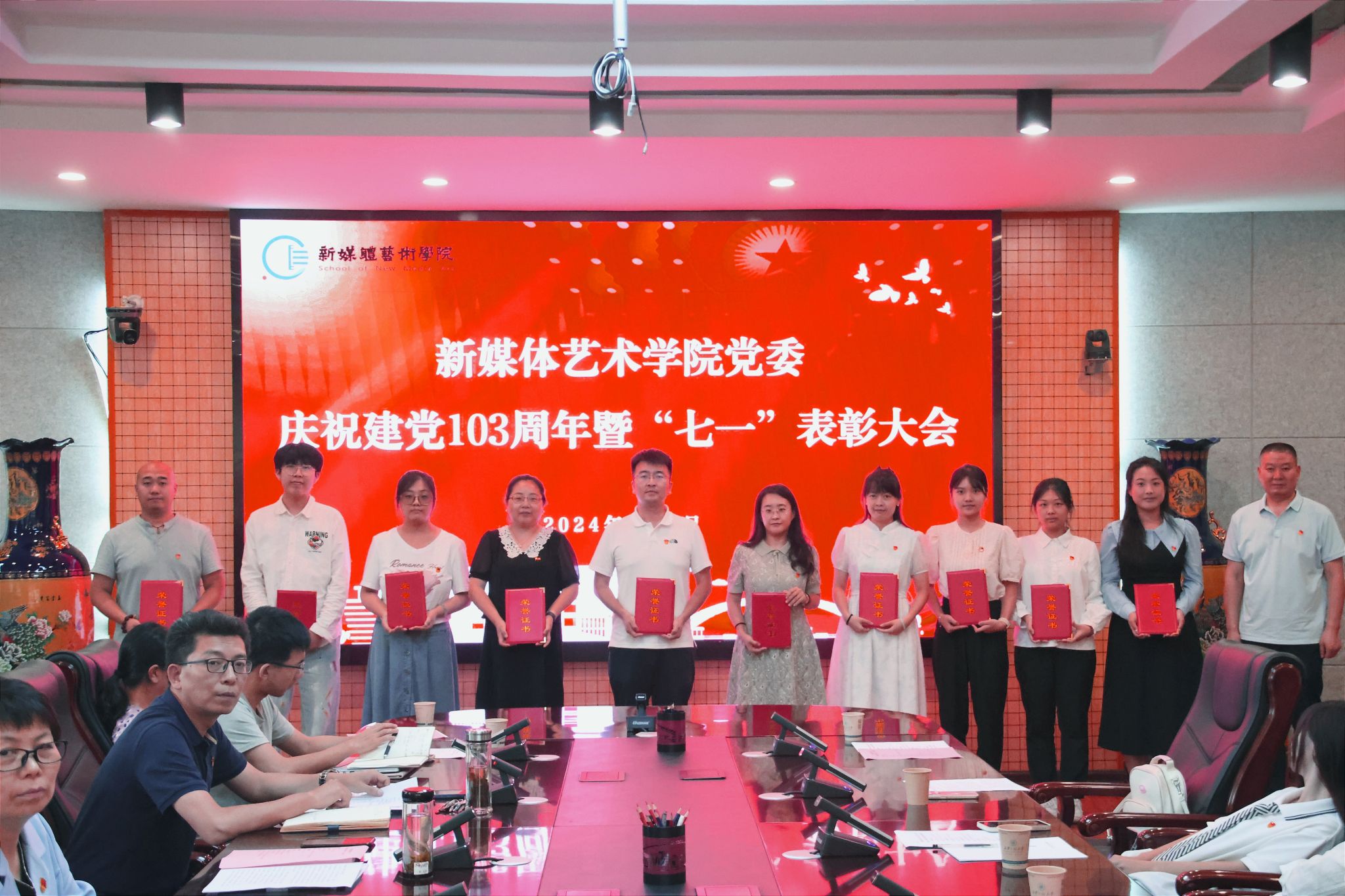 为庆祝中国共产党成立103周年,进一步表彰先进、弘扬正气,提振精神、凝聚共识,7月3日,搜书吧 在金花校区第三会议室召开庆祝中国共产党成立103周年暨“七一”表彰大会。学院党委书记张瑾、院长丛红艳出席会议,全体党支部书记、受表彰的先进集体和个人、第66期预备党员参加了大会。会议由院党委副书记赵文熙主持。
