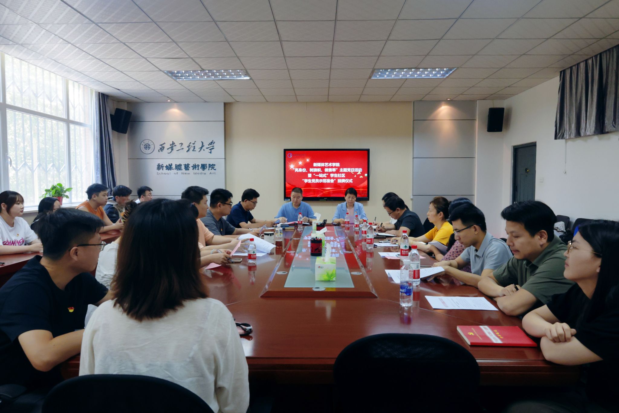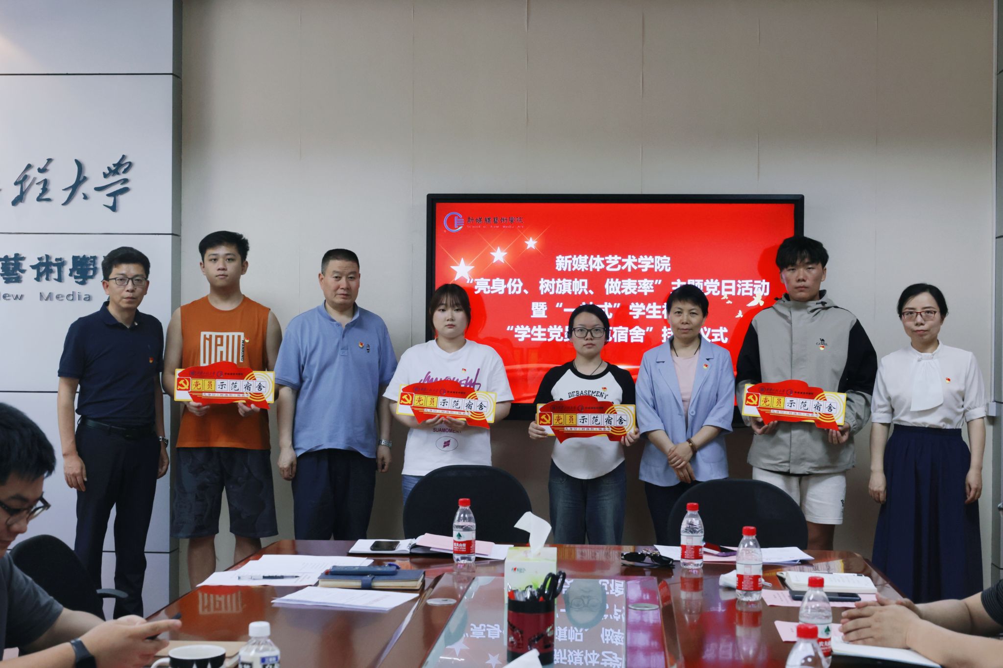 为进一步巩固拓展学习贯彻习近平新时代中国特色社会主义思想主题教育成果,有序推进党纪学习教育,进一步推进“一站式”学生社区建设,充分发挥榜样引领作用,5月22日下午,搜书吧 在8号楼326会议室举办“亮身份、树旗帜、做表率”主题党日活动暨“一站式”学生社区“学生党员示范宿舍”挂牌仪式。学院班子成员、党支部书记、全体辅导员和学生党员代表参加活动,活动由院党委副书记赵文熙主持。