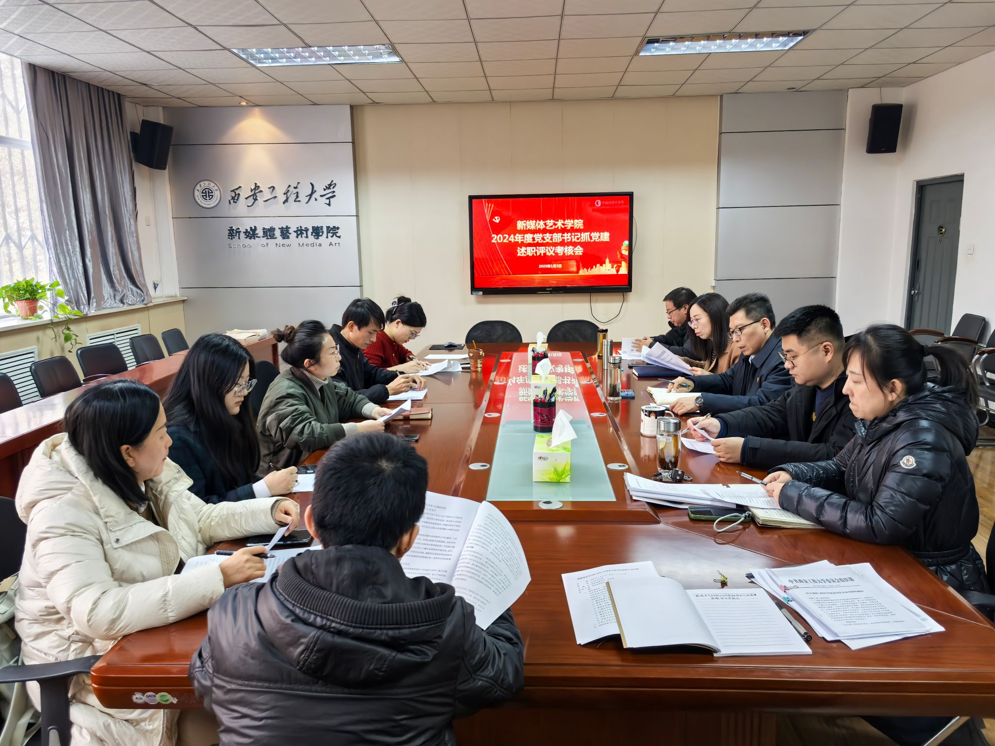 2025年1月3日下午,搜书吧 在金花校区8号楼326会议室召开2024年度党支部书记述职评议考核会。学院班子成员、党委委员、各党支部书记、师生党员代表参加会议。会议由学院党委副书记赵文熙主持。