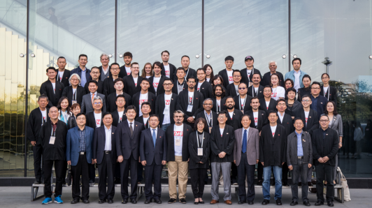 李康国先生在本届交流会的签名墙上签名并与院长马冬教授交流合影