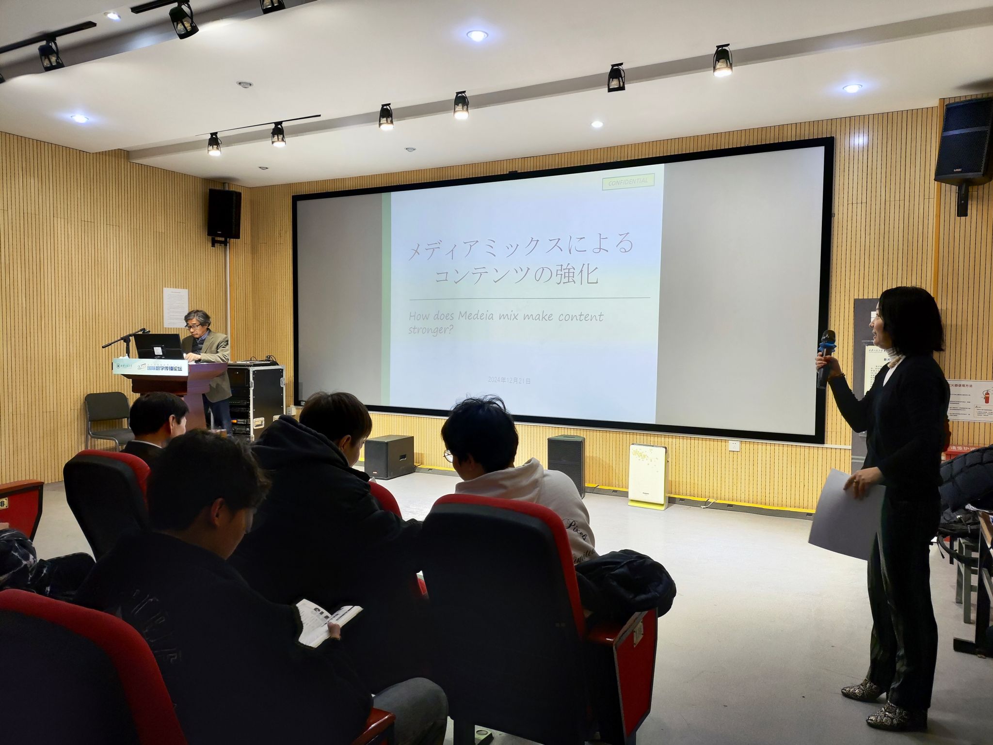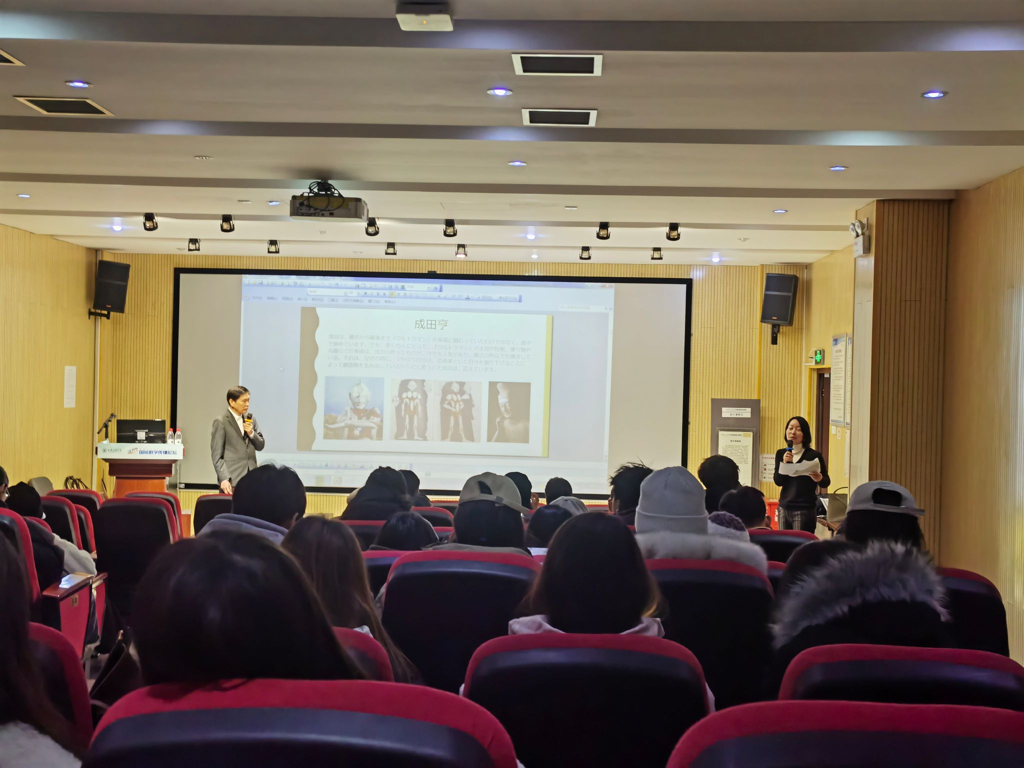 高桥克三、吉田隆两位老师面向学院师生分别开展专题学术讲座。高桥克三老师讲述了成田亨、高山良策、小林七郎三位日本代表性艺术家创作家喻户晓的奥特曼、特斯拉的过程,播放了部分珍贵视频,并讲述了中国文化对日本文化的深刻影响,以及两国之间语言表达的相同之处。吉田隆老师介绍了日本的动漫、游戏、杂志如何延伸为影响世界的流行文化,并现场分享了中日间最流行的动漫杂志和书籍,以及如何通过一本书籍或者文学作品找到作品的灵感及叙事方法。
