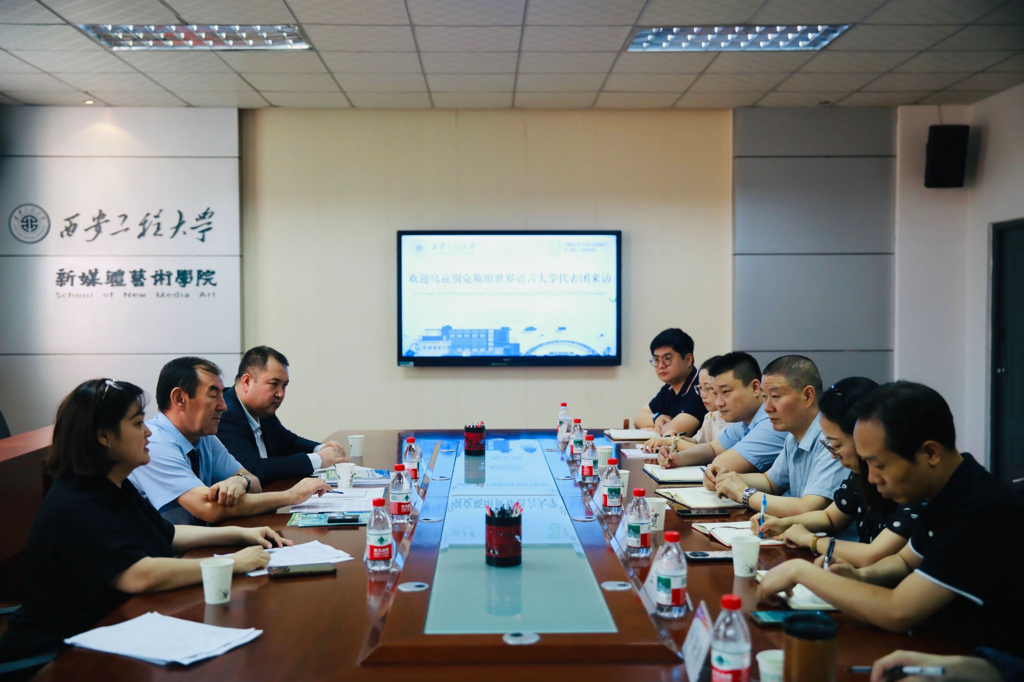 会后,乌兹别克斯坦世界语言大学代表团还参观了学院西安中巴经济走廊文化艺术国际科技合作基地、数字文创与艺术形象研究中心及各专业实验室,对学院科研设施与成果表示高度认可。双方将以此次交流为契机,深化合作,共同推动中乌教育文化交流,携手落实共建“一带一路”倡议和中国中亚峰会精神。