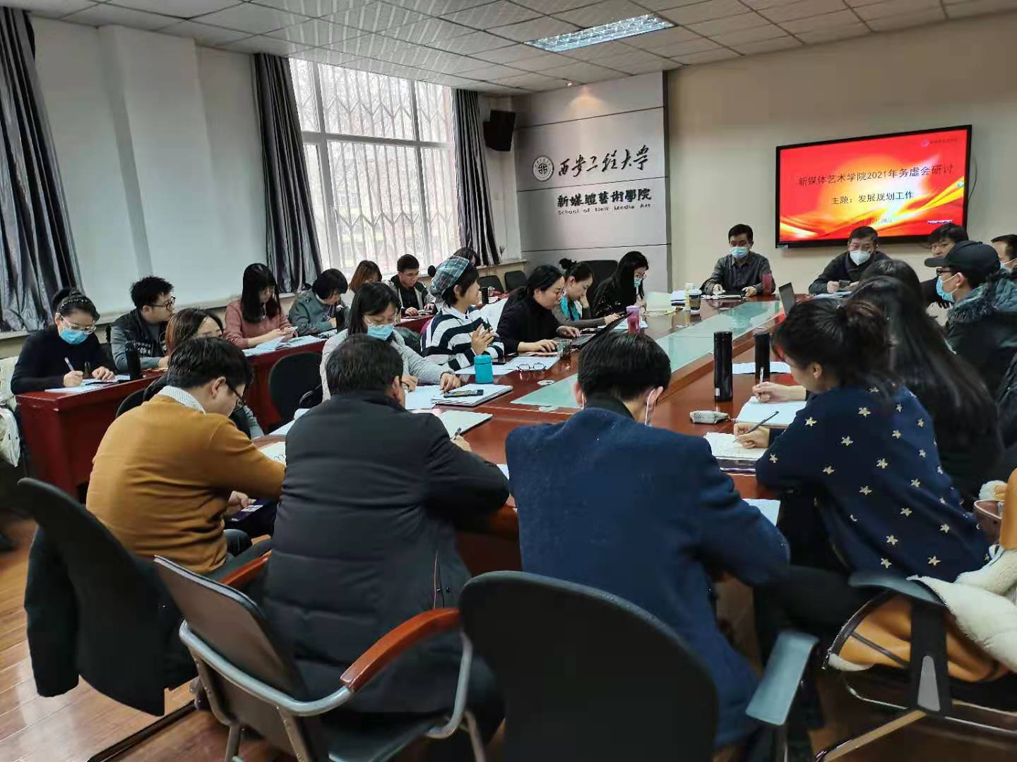 关于发展规划工作,马冬院长指出十四五期间要进一步落实国家对高等教育的政策要求,以把我校建成特色鲜明的研究型大学为总体目标,以戏剧与影视一级学科申报建设为中心工作,抓好人才培养这一核心关键,明确学院为数字经济时代互联网内容生产培养专业人才;加强师资队伍建设,以“四有好老师”为标准严格要求教师,强调老师要有仁爱之心,教师发展方向要顺应社会行业需求、顺应学院学科发展方向;此外,要抓好科学研究及科研成果的转化,重视教材建设,建立健全对外合作办学机制。现场老师们也对学院未来规划提出了各自的想法,如进一步加强课堂思政建设,利用新媒体手段不断创新教育教学方法;针对学院艺术类专业竞赛多的情况,可专门设立竞赛管理部门;应建立科学合理的鞭策机制管理学院师生等。