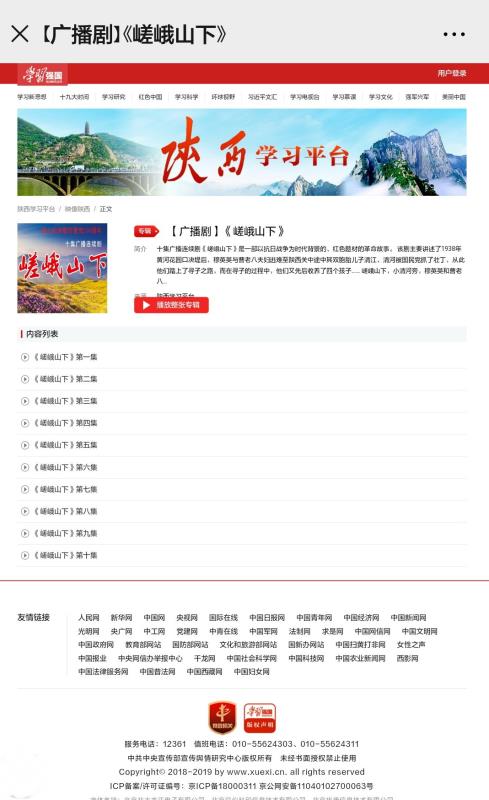 收听该剧可登录学习强国APP进入陕西学习平台的“映像陕西”栏目,也可从下方链接直接进入: