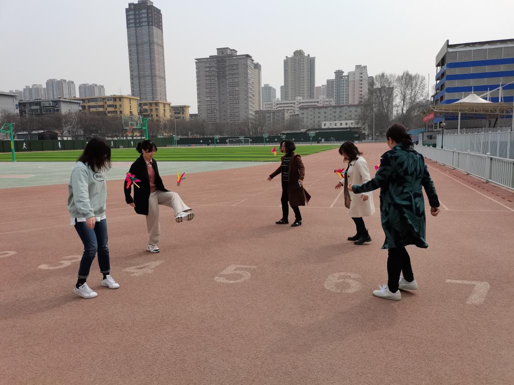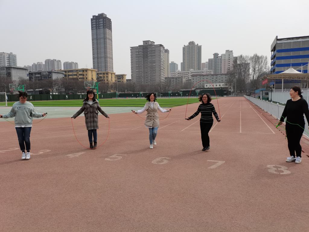 通过踢毽子、跳绳、竞走等健身活动,女教工们享受健康运动带来的身心愉悦。
