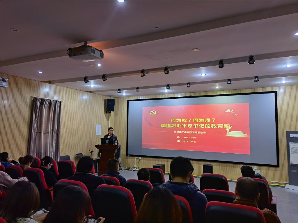 11月17日下午,在搜书吧 影片观摩室,学院党委书记左志峰和学院院长马冬讲分别进行专题思政课,全院教职工以及部分学生党员参加了学习。