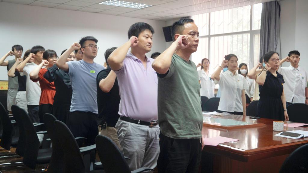 庄严的入党宣誓是共产党人初心使命的集中体现,是党员开启政治生命的象征,也是最为生动的党性教育,宣读誓词的那一刻,全体党员感到无比的激动和光荣,也深感一份新的责任在肩。(撰稿:康新兴;审核:张瑾)