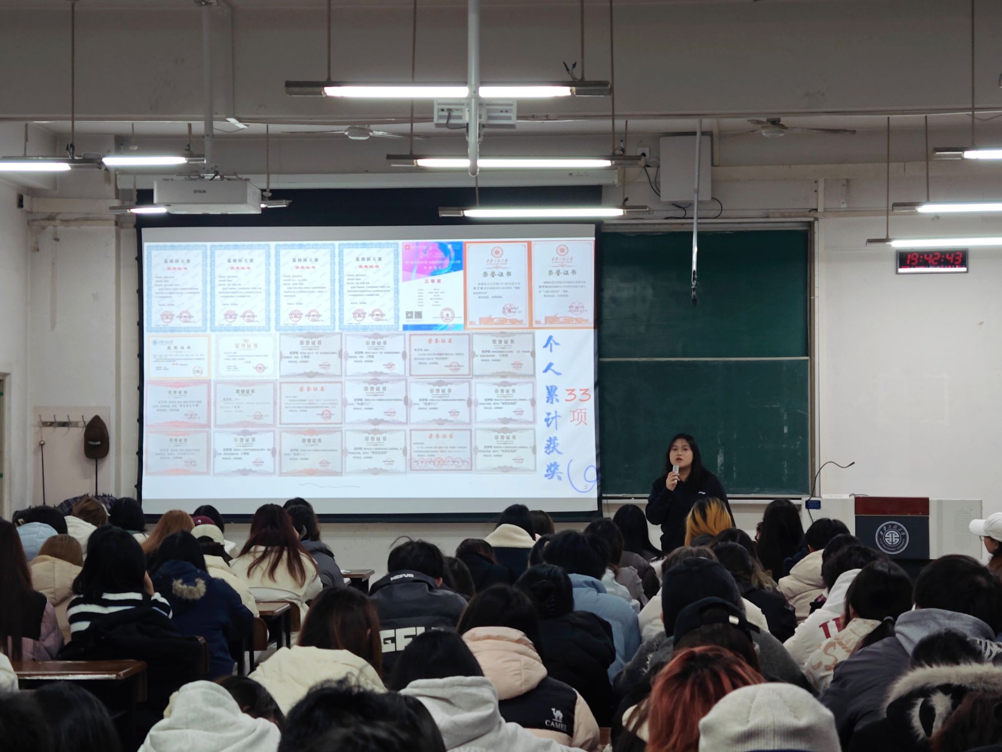 2025年12月8日,搜书吧 “心有榜样 行有力量”诚信感恩励志分享会在金花校区8号楼415教室顺利举行。分享会由国家奖学金获得者姜北、国家励志奖学金获得者谢梦晗分享,2025级140余名同学参加。