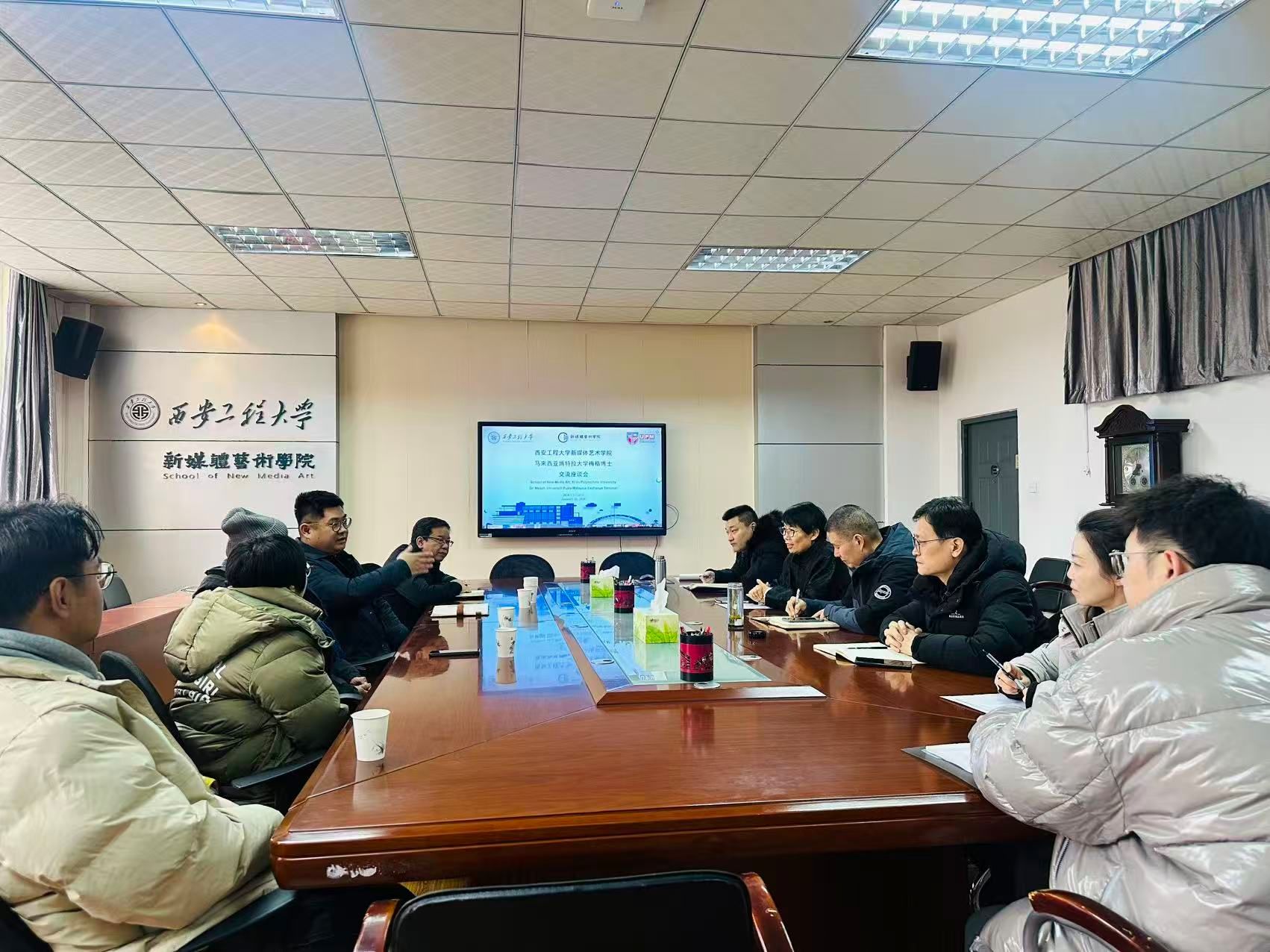 会议伊始,丛红艳对代表团的到访表示热烈欢迎,并介绍了学院在学科建设、人才培养、国际合作与交流等方面的发展情况。马来西亚博特拉大学梅格博士随后介绍了该校的专业定位与国际学生培养机制,并表达了积极的合作意愿。双方围绕师生互访、国际学术研讨等议题进行了深入交流与讨论。会后,马来西亚博特拉大学代表团参观了“陕西省电影评论与理论研究基地”“陕西省引进国外智力示范基地”“数字文创与艺术形象研究中心”“西安中巴经济走廊文化艺术国际科技合作基地”及学院各专业实验室。双方表示将以此次交流为契机,进一步深化合作,共同推动未来发展,携手共创共赢。