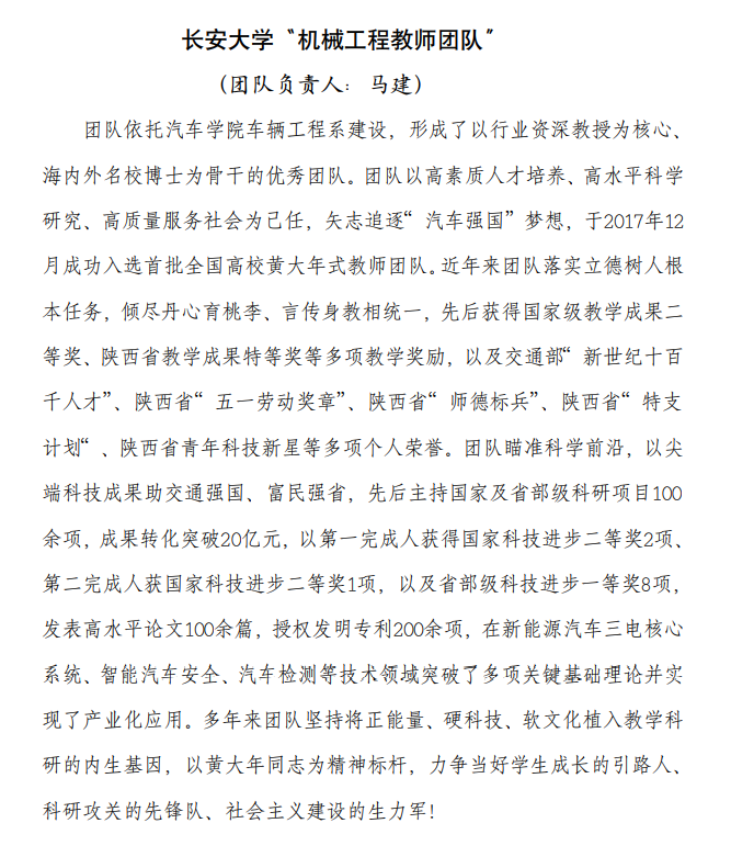 为深入贯彻落实习近平总书记对黄大年同志先进事迹重要指示精神,引导广大教师持续向黄大年同志学习。发挥“全国高校黄大年式教师团队”的示范引领作用,激发广大教师积极投身教书育人事业,根据《陕西省教育厅办公室关于开展“全国高校黄大年式教师团队”学习宣传活动的通知》文件精神及我校向“全国高校黄大年式教师团队”学习的活动。现将陕西省“全国高校黄大年式教师团队”先进事迹发布于此,大家积极学习。