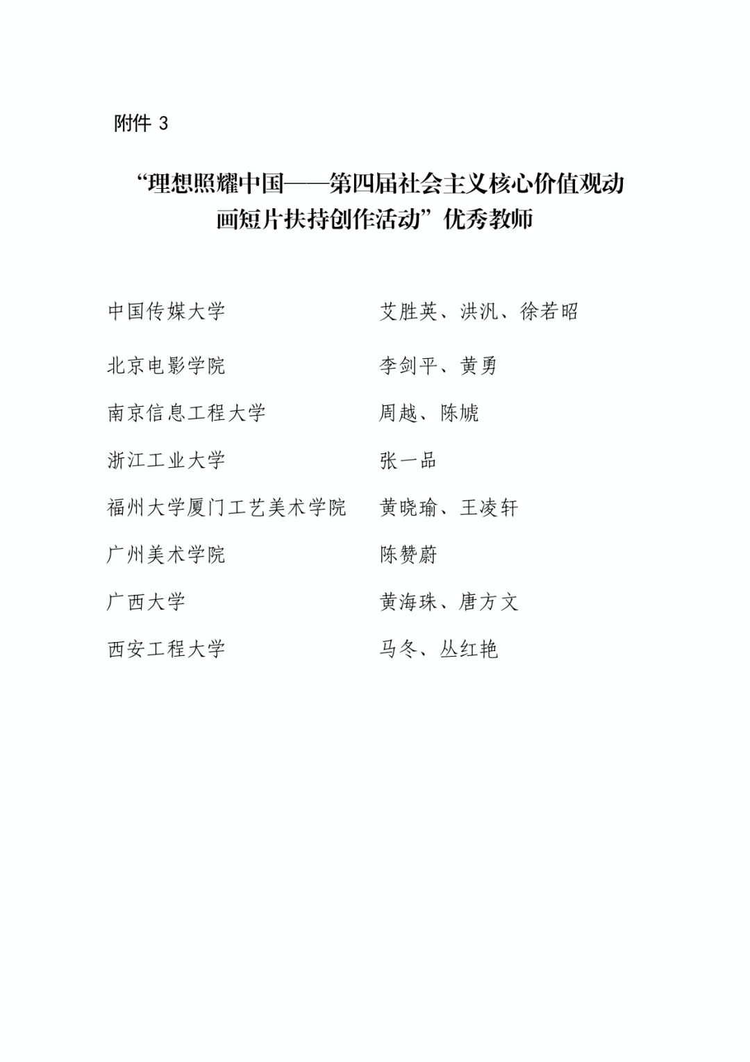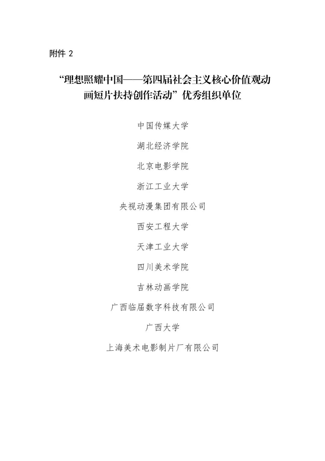 为庆祝中国共产党成立100周年,引导青年动画人才在学习和创作实践中贯穿结合融入社会主义核心价值观,不断推出主题鲜明、内涵丰富、创意新颖、制作精良的优秀动画短片,国家广播电视总局于2020年7月启动“理想照耀中国——第四届社会主义核心价值观动画短片扶持创作活动”。评选结果由教育部高等学校动画、数字媒体专业教学指导委员会组织专家评议推荐。