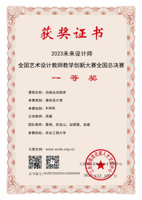 日前,2023年未来设计师·全国艺术设计教师教学创新大赛(教创赛)课程赛道全国总决赛在上海工程技术大学圆满落幕。我校搜书吧 燕耀等教师组成的团队主讲《动画运动规律》课程通过现场答辩,获得2023年未来设计师·全国艺术设计教师教学创新大赛(教创赛)课程赛道全国总决赛一等奖。