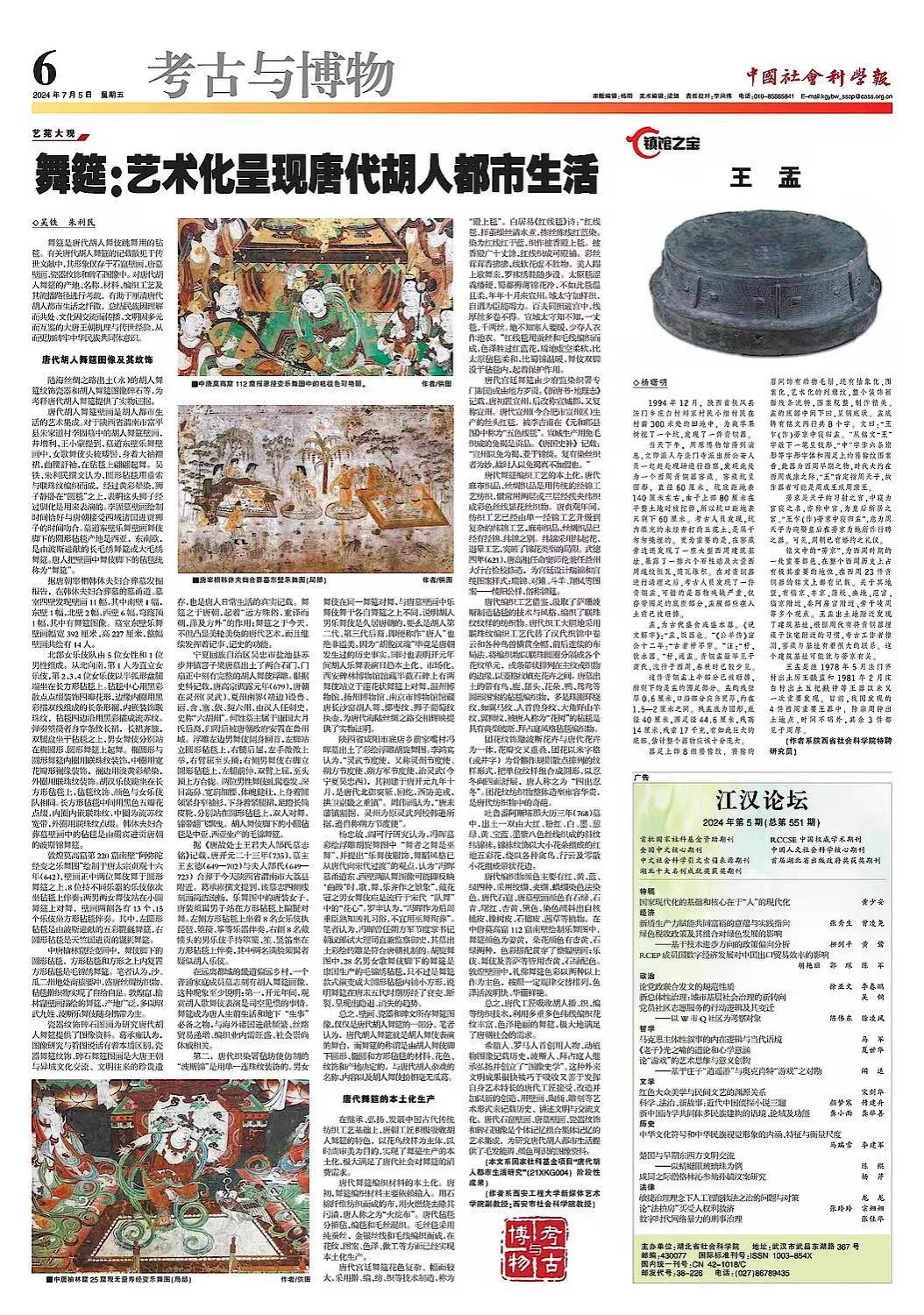 2024年7月5日,《中国社会科学报》第6版考古与博物栏目刊登了搜书吧 吴铁副教授的文章《舞筵:艺术化呈现唐代胡人都市生活》。该文章是国家社科基金西部项目“唐代胡人都市生活研究”的阶段性成果之一。