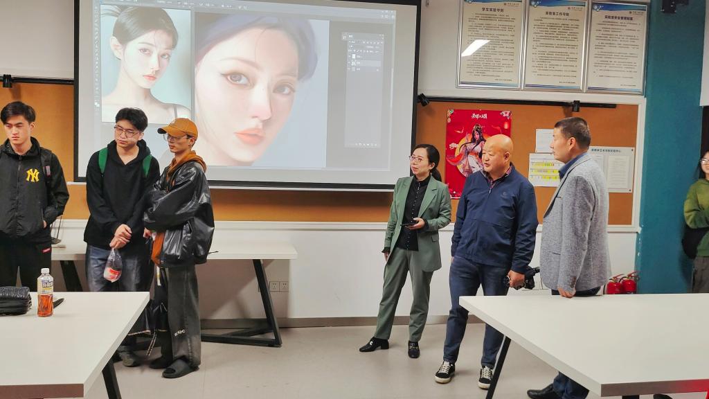 当天,学院领导还陪同胡一梁老师参观了学院实验室,就实验室建设和实践教学进行了现场交流。胡老师认为学院实验室空间充足,管理比较规范,同时也为学院实验室建设提出了积极建议。他指出在实验室的多场景融合应用方面还需多寻求方法和路径,在大型设备的管理上可以更开放一些,根据师生专业实践的多元化需求制定实用有效的管理流程和制度,积极融合校外资源开展实践教学,以更好地为师生服务,提升传媒类专业实践教学水平。