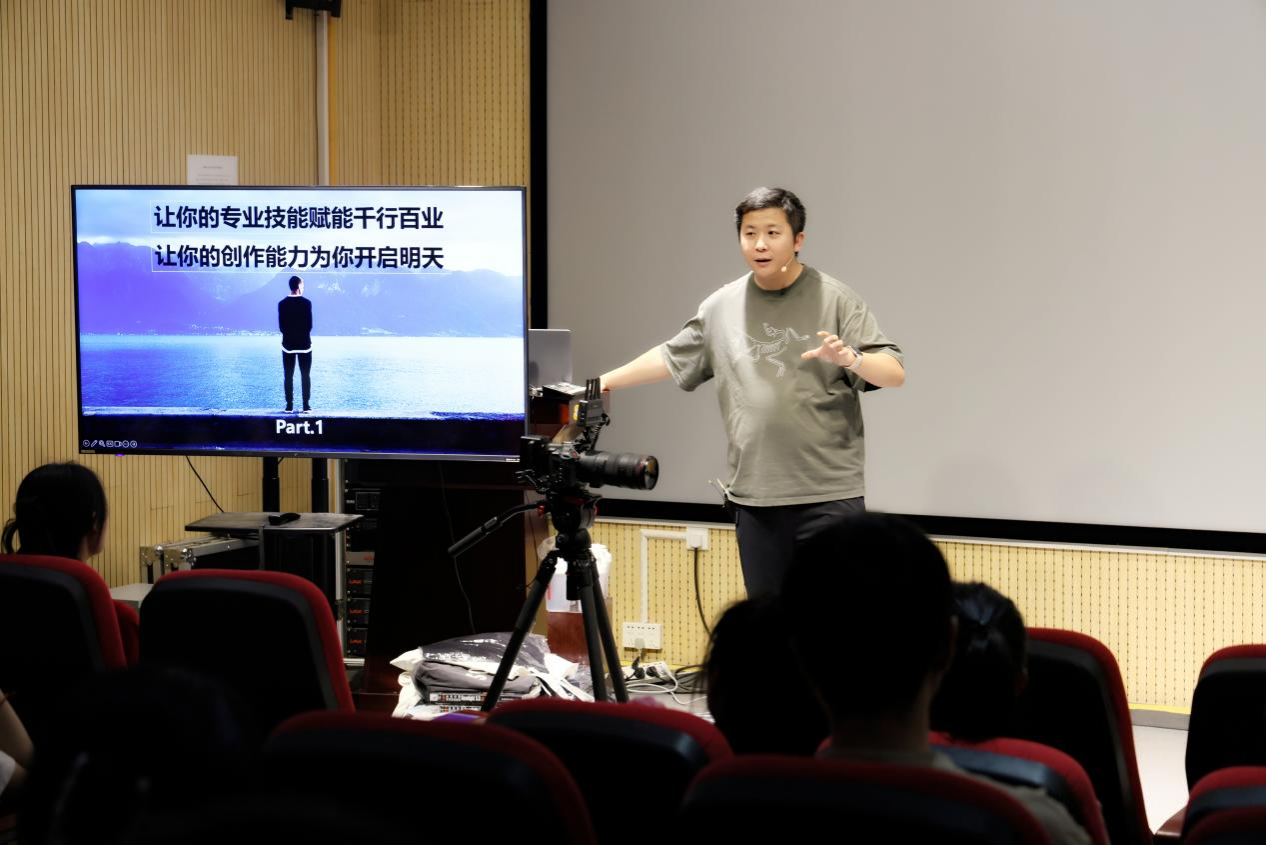 来自佳能中国的资深技术讲师携最新的摄影设备上台分享,为现场的师生和嘉宾详细讲解了如何正确选择、使用摄影设备。讲师的专业分享,为学生们解答了许多关于摄影器材的疑惑,帮助他们提升了专业技能,也为他们日后的实践操作打下了坚实的基础。